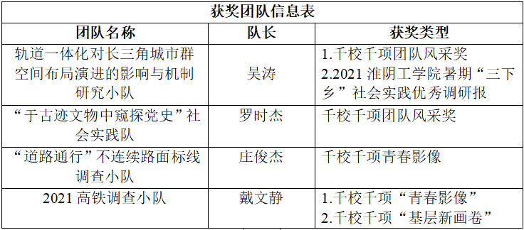 必一运动bsport体育2021年暑期社会实践活动已经圆满结束,目前正在评选阶段。本次暑期社会实践活动中共有7支队伍参加,在老师的指导、同学的努力下,截止目前已有2支队伍在“请党放心 强国有我”2021全国老员工“千校千项”网络展示活动中获得了“千校千项团队风采奖”;另外还有2支队伍获得了“千校千项青春影像奖”;更有6名同学获得了“千校千项个人风采奖”;在2021必一运动暑期文化科技卫生“三下乡”社会实践活动中罗时杰、吴蔚被评选为先进个人;“道路通行”不连续路面标线调查研究调研报告被评为优秀调研报告。