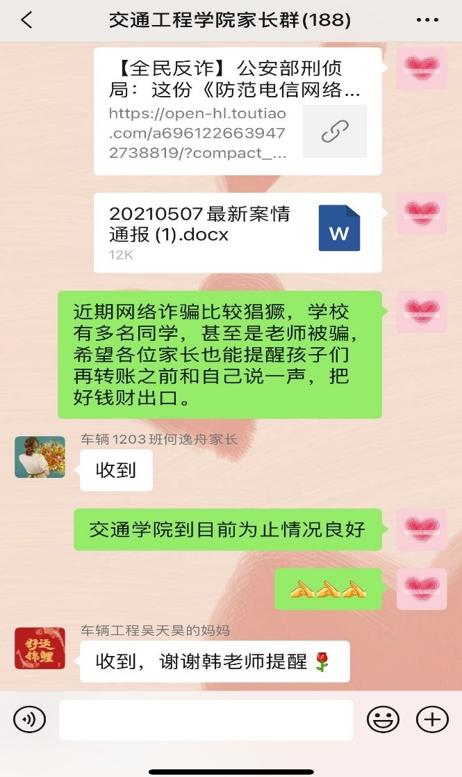 必一运动bsport体育员工会开展了以下活动。一,各班级召开防诈骗班会,通过宣讲、问卷收集等方式宣讲电信网络诈骗的相关知识与防范方法;二,各年级辅导员在员工群与家长群经常转发诈骗案例,增强公司员工防骗知识和技能;三,各班级开展警惕网络电信诈骗承诺书签字活动,巩固同学们的防诈意识;第四,必一运动bsport体育于12月15日成立防诈骗组织志愿者联盟,总结公司近期防诈骗宣传活动内容,并计划下一步防诈骗活动方案。
