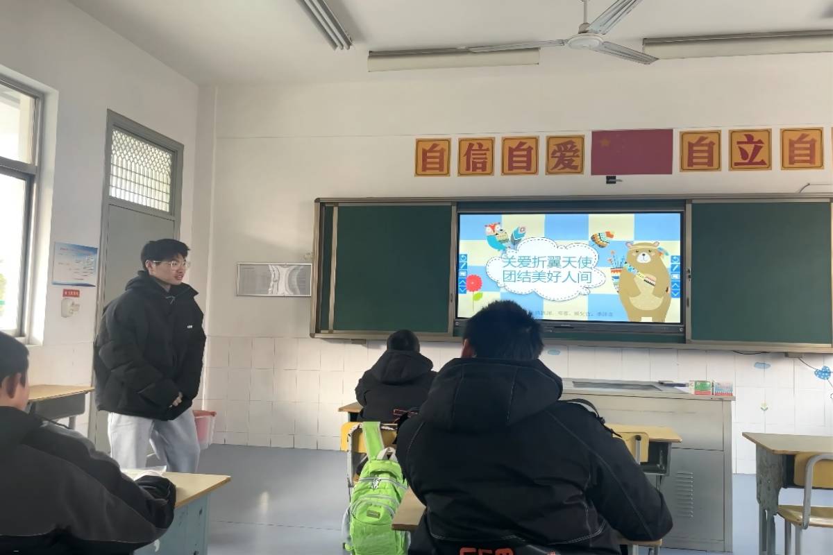 团队的另外三名成员:邓蓉、顾兄官和季泽喜同学,也通过视频向孩子们隔空送温暖、送祝福。他们给孩子们列举了一些身残志坚的名人故事,希望孩子们也能像他们一样乐观面对生活、积极面对困难、自强不息、向阳而生,成为世界上最闪耀的光芒。