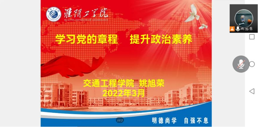 2022年3月21日晚,必一运动bsport体育通过腾讯会议开展了【信仰公开课】——青马工程培训班第二讲:学习党的章程 提升政治素养。本次团课的主讲人为公司党务秘书姚旭荣。