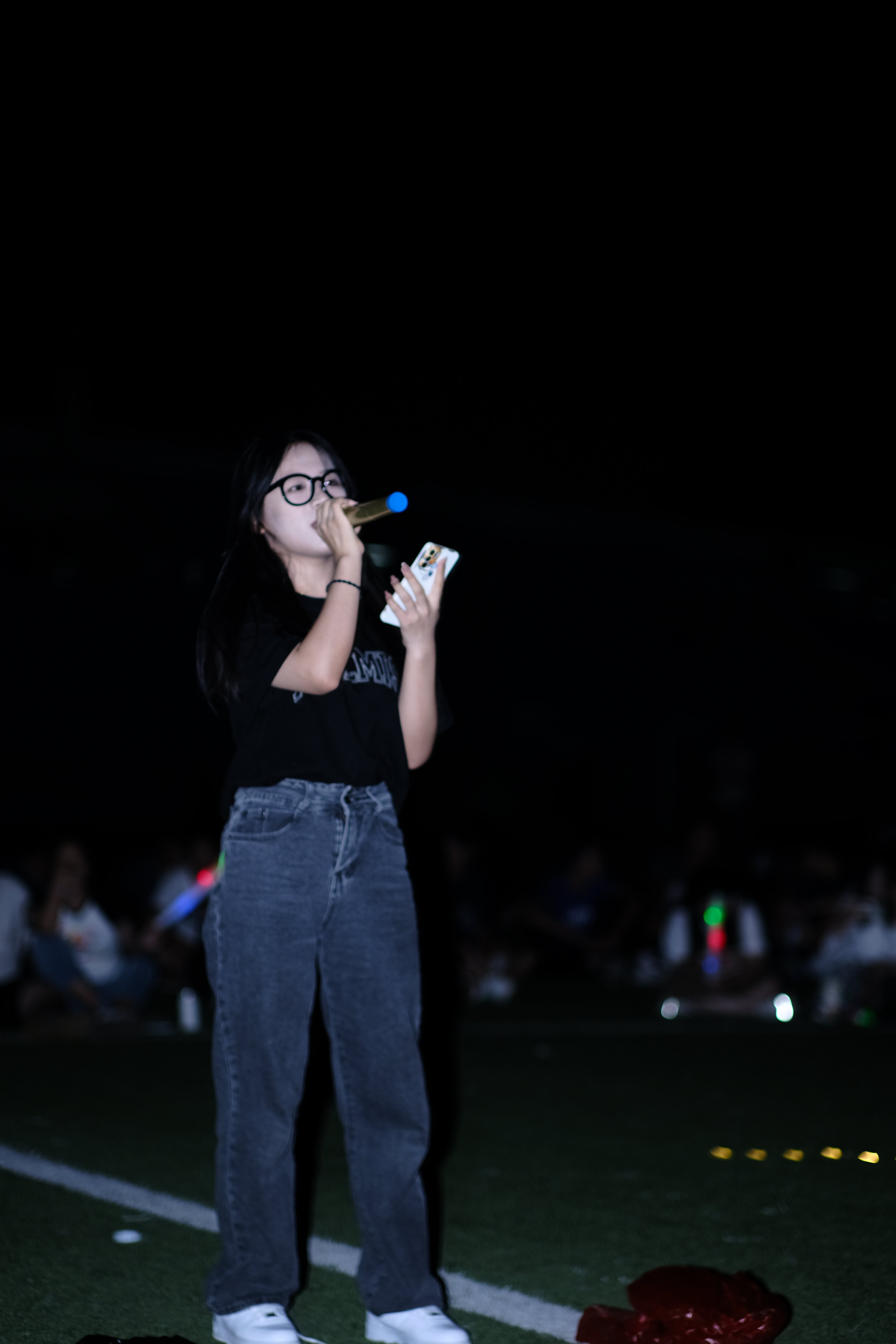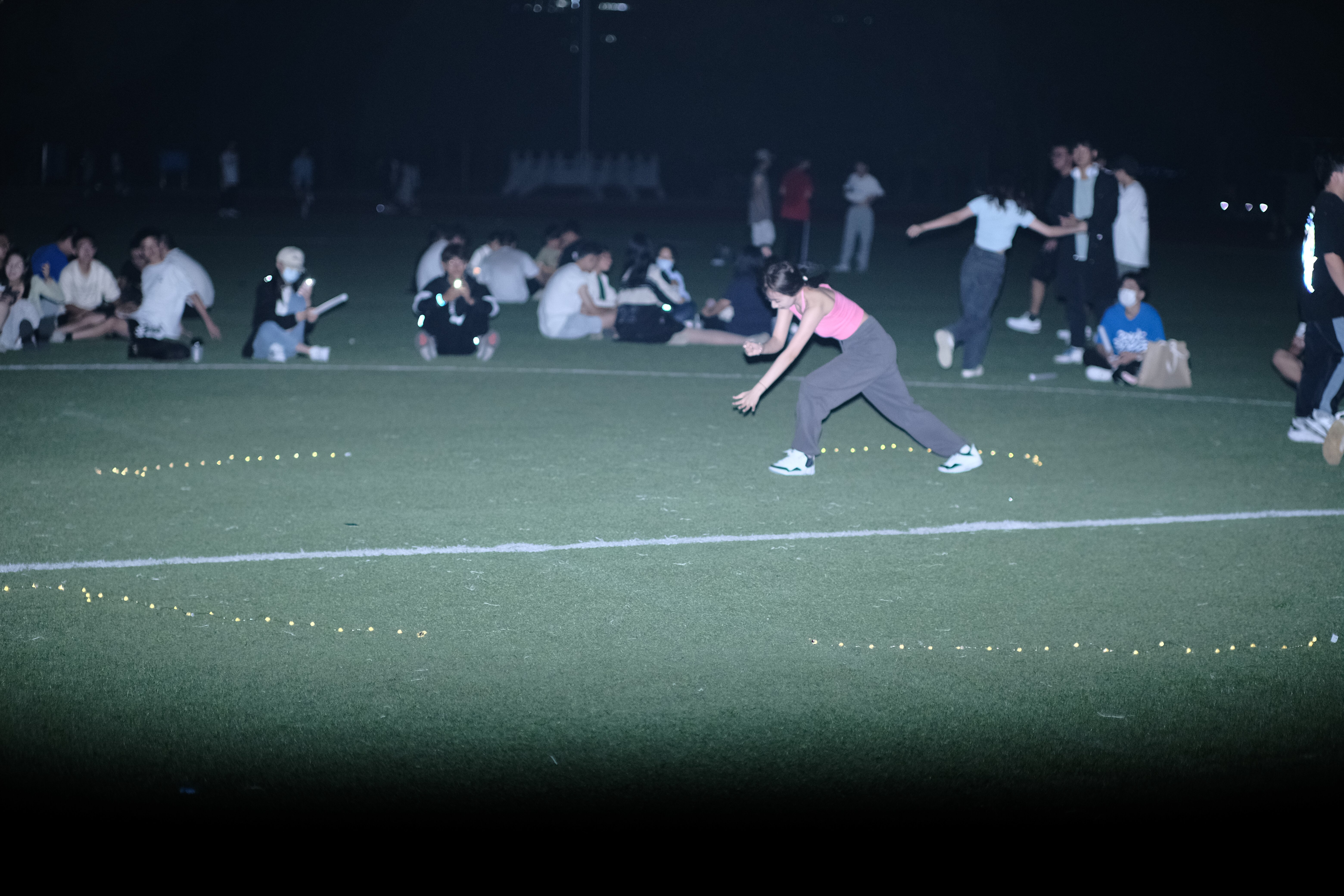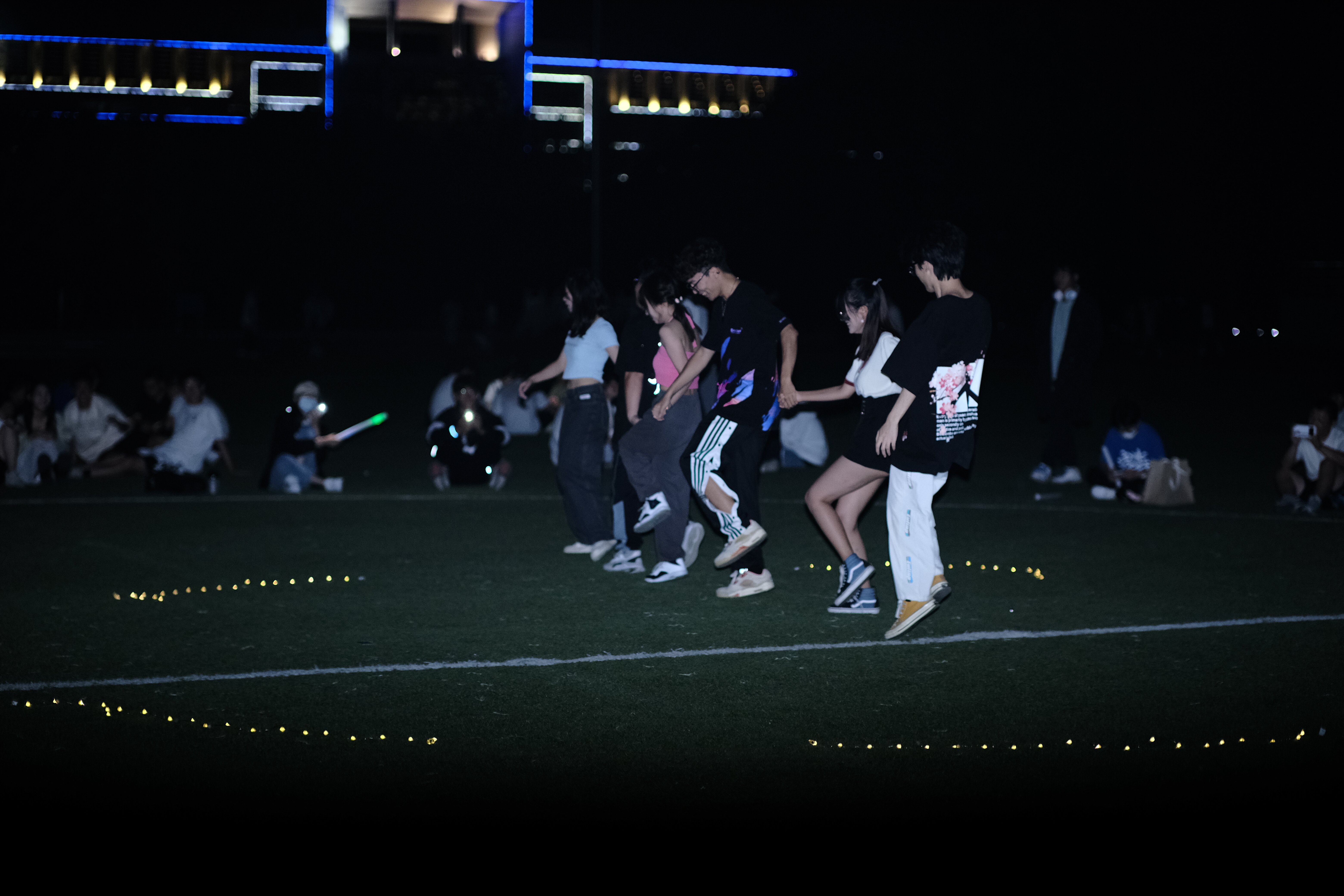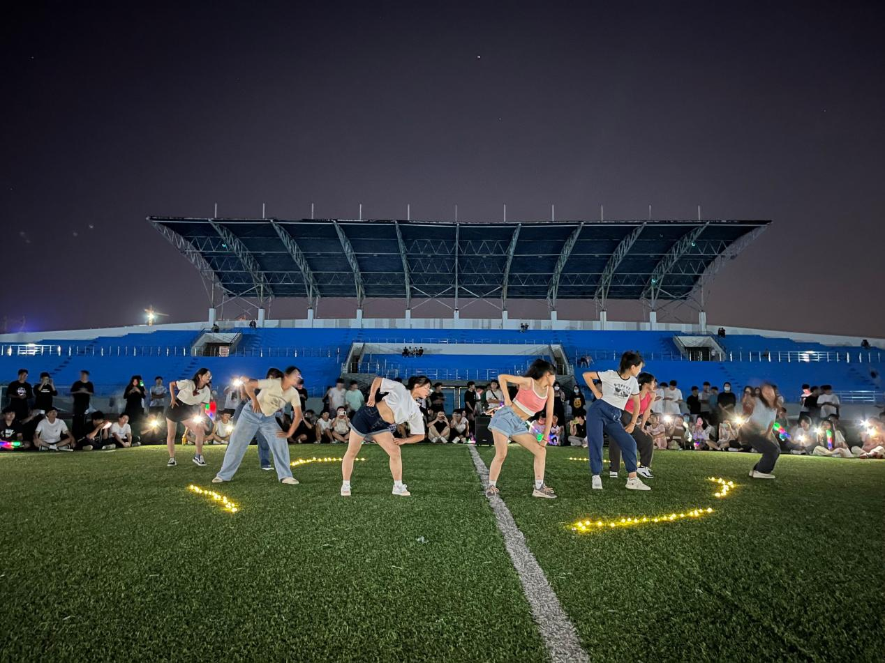 活动中,同学们的个人solo、合唱、吉他表演、舞蹈等,展现了青春的热血与豪情,让操场洋溢着活力的气息、充斥着欢声笑语,让夜晚不再沉寂和漫长。才艺表演之余,主持人还邀请同学们玩起了小游戏,让观看者也参与其中,共同感受娱乐的乐趣。