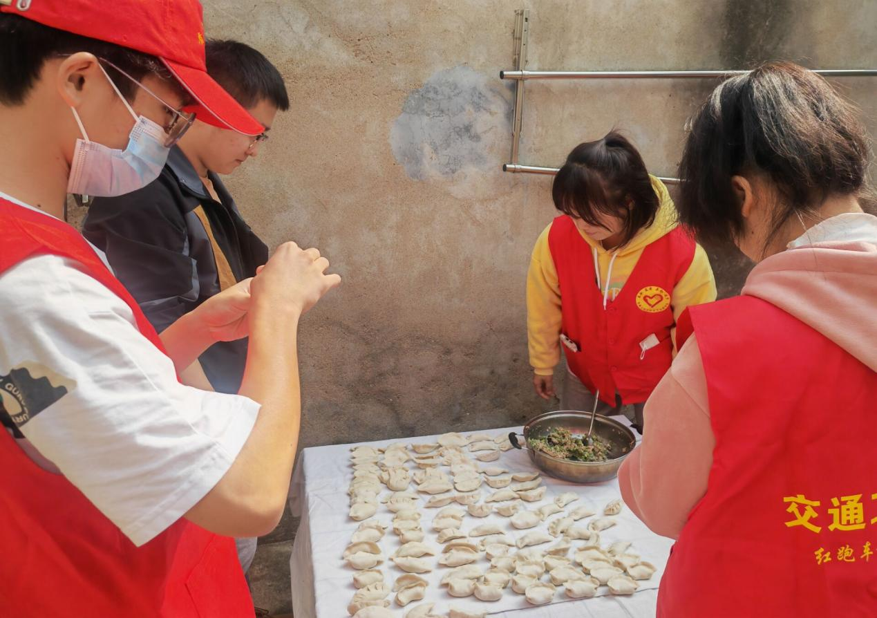 上午,一部分队员同阿姨和两个孩子一起出门散心,其他队员清洗为老人买来的新鲜蔬菜,拌饺子馅,大家一同为老人包饺子,虽然大大小小的饺子形态各异,但每一个饺子的背后,都饱含大家对老人和孩子的温暖与关怀。