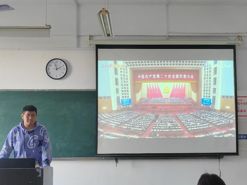 周航带领大家观看了党的二十大工作报告视频,领会党的二十大精神。党的二十大是在迈上全面建设社会主义现代化强国新征程、向第二个百年奋斗目标进军的关键时刻召开的一次十分重要的会议。大家纷纷表示,在习近平新时代中国特色社会主义思想指引下,中国共产党一定能带领中国人民全面建成社会主义现代化强国、实现第二个百年奋斗目标。新时代的中国青年应当以实现中华民族伟大复兴为己任,增强做中国人的志气、骨气、底气,不负时代,不负韶华,不负党和人民的殷切希望,争做新时代好青年!