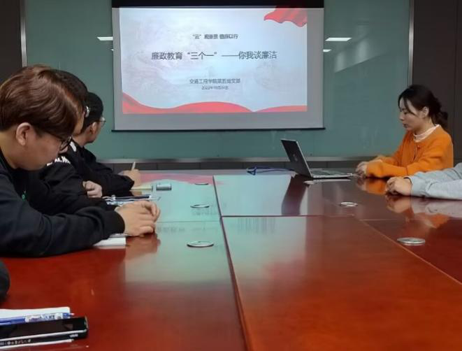组织开展一次廉洁你我谈。全体党员对党风廉政建设的认识和体会进行交流,大家踊跃发言,深入探讨了如何加强廉政建设、如何加强自身修养,支部书记顾秉健要求全体党员牢记廉洁要求,守住廉洁底线。