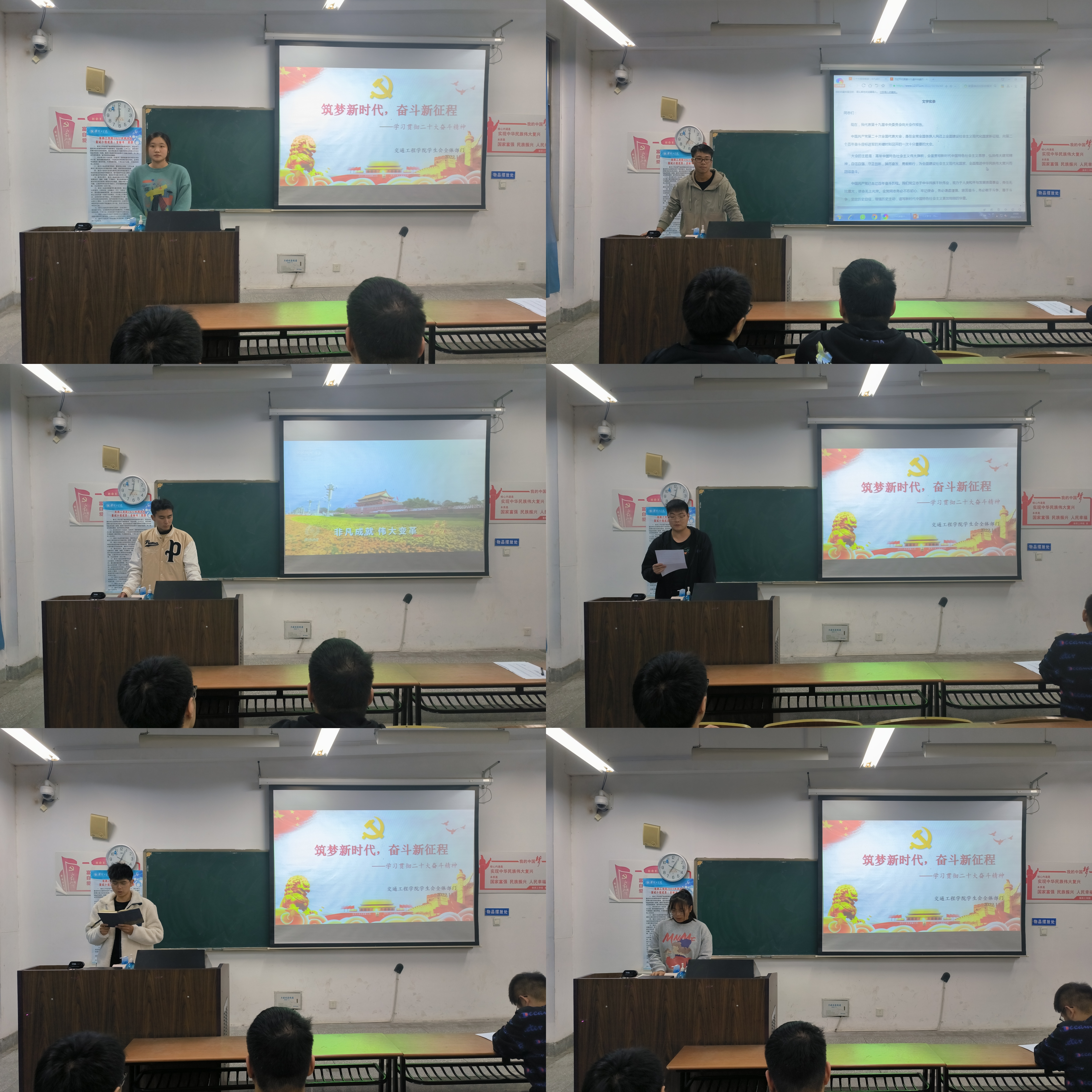 陈媛以《筑梦新时代,奋斗新征程》为主题,从“充分认识学习贯彻党的二十大精神重要意义”、“党的二十大报告主要内容”和“以实际行动学习贯彻党的二十大精神”三个方面,带领同学们学习领会党的二十大精神,并观看了解读二十大报告精神的短视频,以此加深对党的二十大精神的认识与理解,坚定不移听党话、跟党走,怀抱梦想又脚踏实地,敢想敢为又善作善成,立志做有理想、敢担当、能吃苦、肯奋斗的新时代好青年!最后,与会成员畅谈了学习贯彻二十大精神的体会。