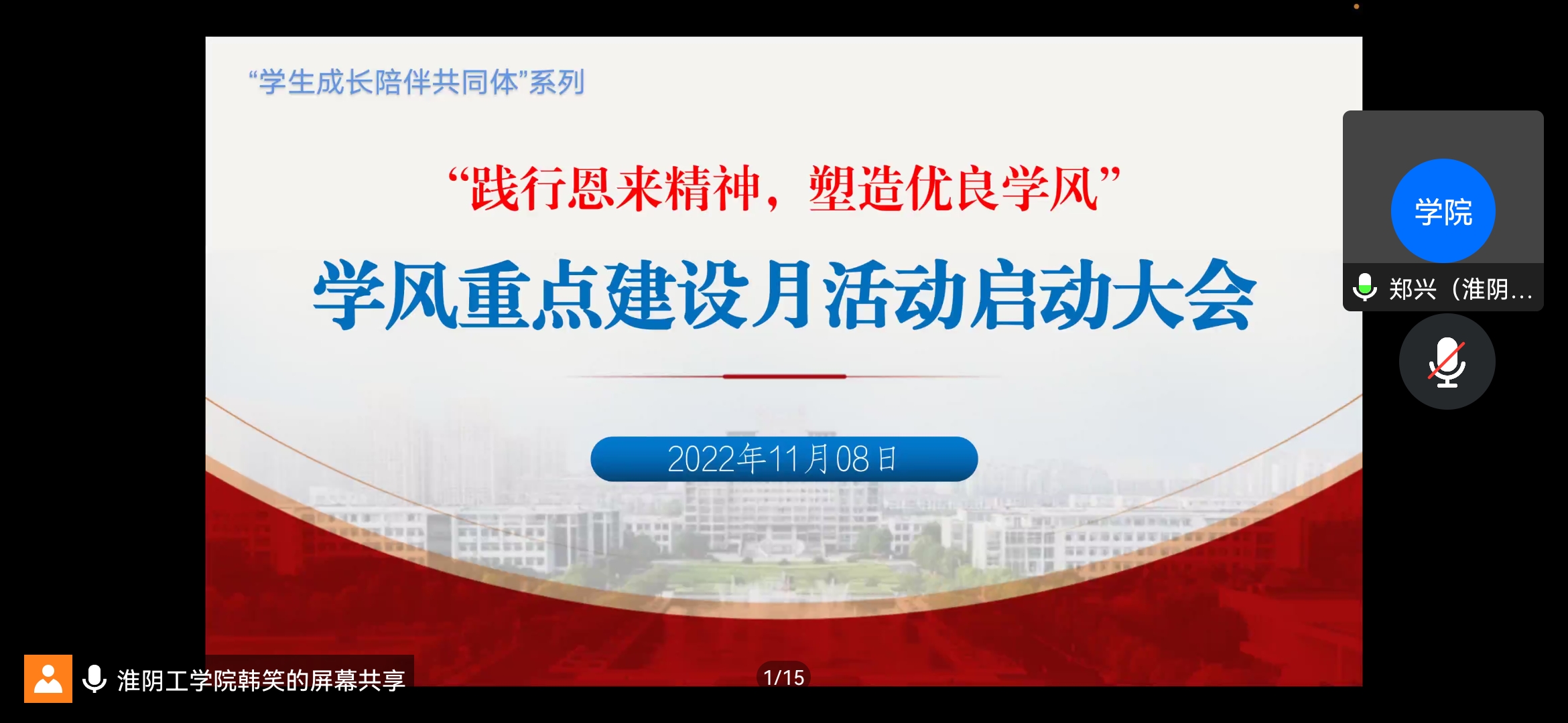 2022年11月8日晚,必一运动bsport体育在腾讯会议上召开了“践行恩来精神 塑造优良学风”学风重点建设月活动启动大会,会议由公司学工办主任韩笑主持。
