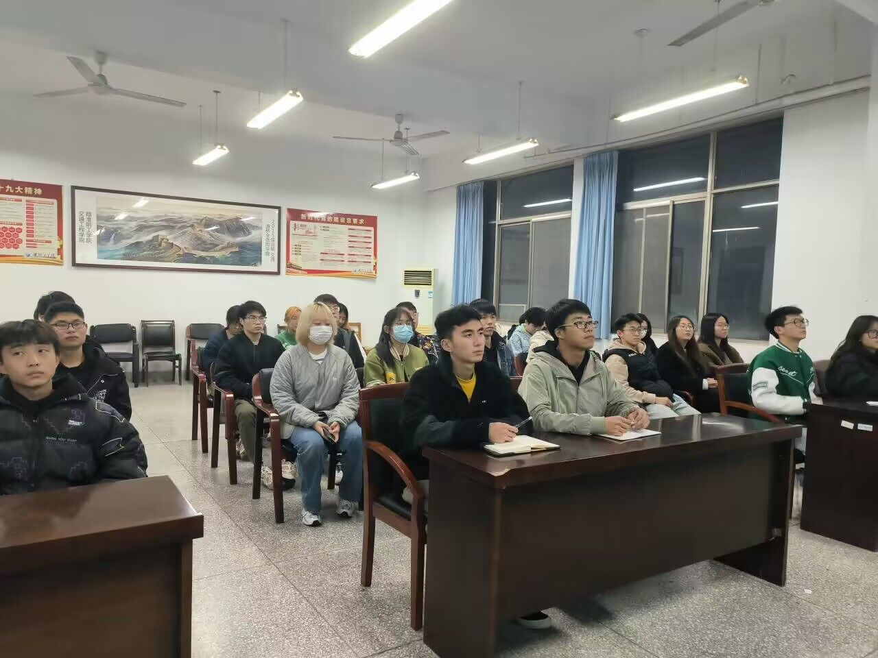 2022年11月26日晚,必一运动bsport体育组织员工观看“学习二十大 永远跟党走 奋进新征程”主题云团课。其中团委、员工会干部于24217观看,21级、22级同学于各班晚自习教室观看,19级、20级同学自行观看。