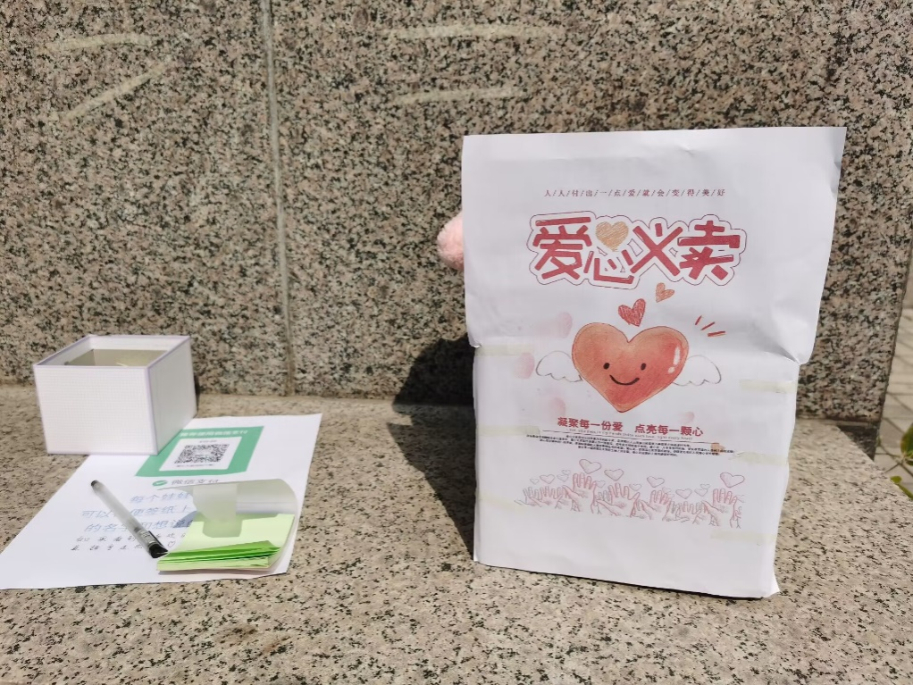 中午十二点,志愿者们收集了同学的闲置物品,前往七食堂门口为贫困生进行无人爱心义卖,同时为所有同学提供便签纸和笔,供买下义卖品的同学写下自己的名字以及对他人的寄语。本次义卖所有收入将用于为本院贫困生购买生活日用品。