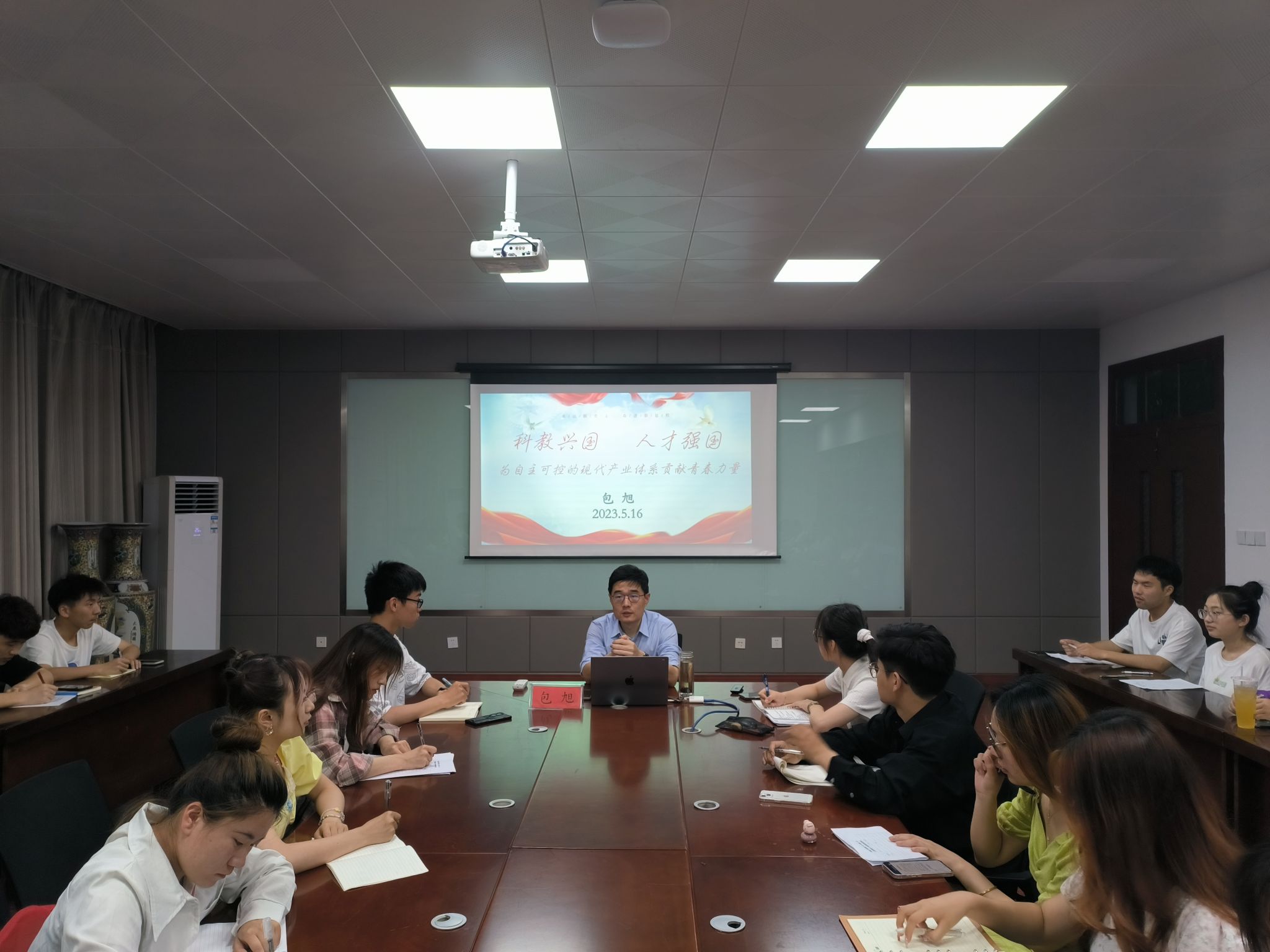 包旭经理作了《科教兴国 人才强国》专题报告,以“战略意义、现实问题、原因分析、我们该怎么做”四个大方向为抓手向同学们具体讲述了如何“为自主可控的现代产业体系贡献青春力量”。