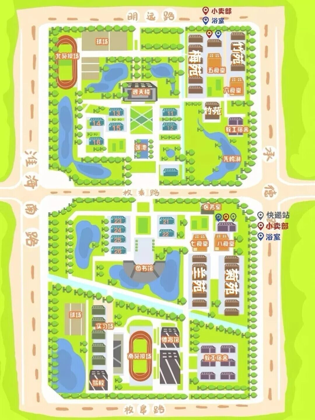 菜鸟驿站:北苑在五食堂后。南苑在八食堂后。