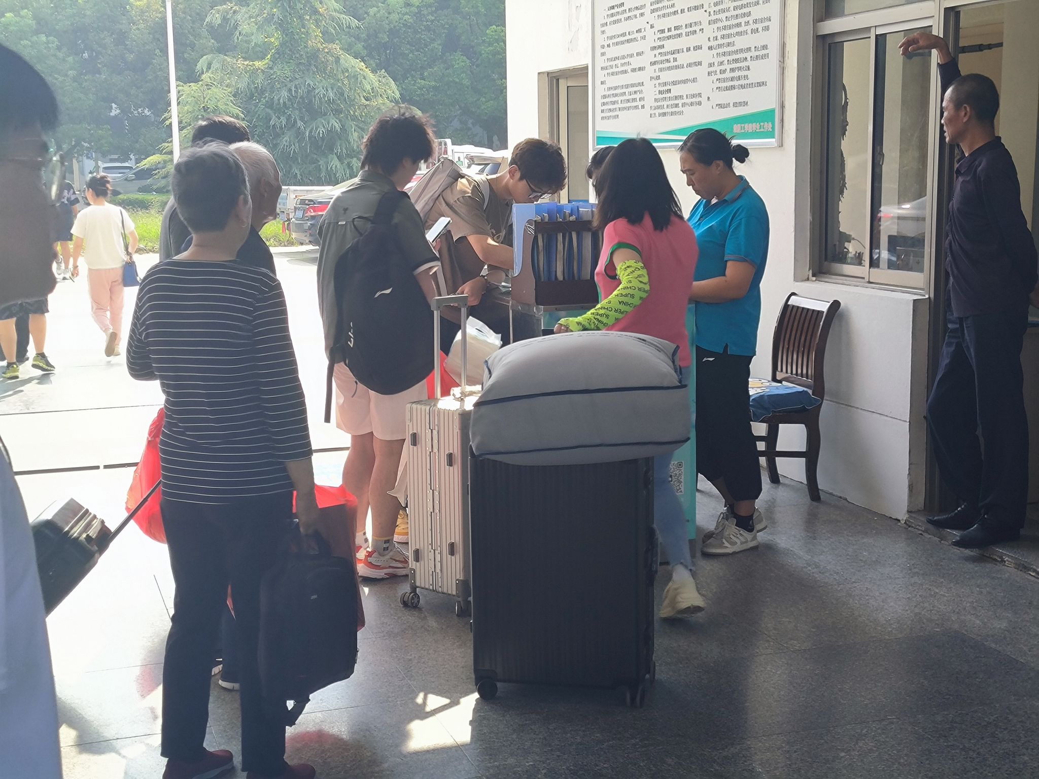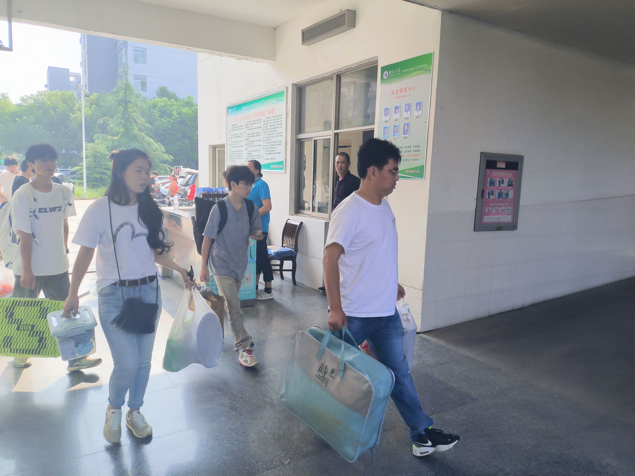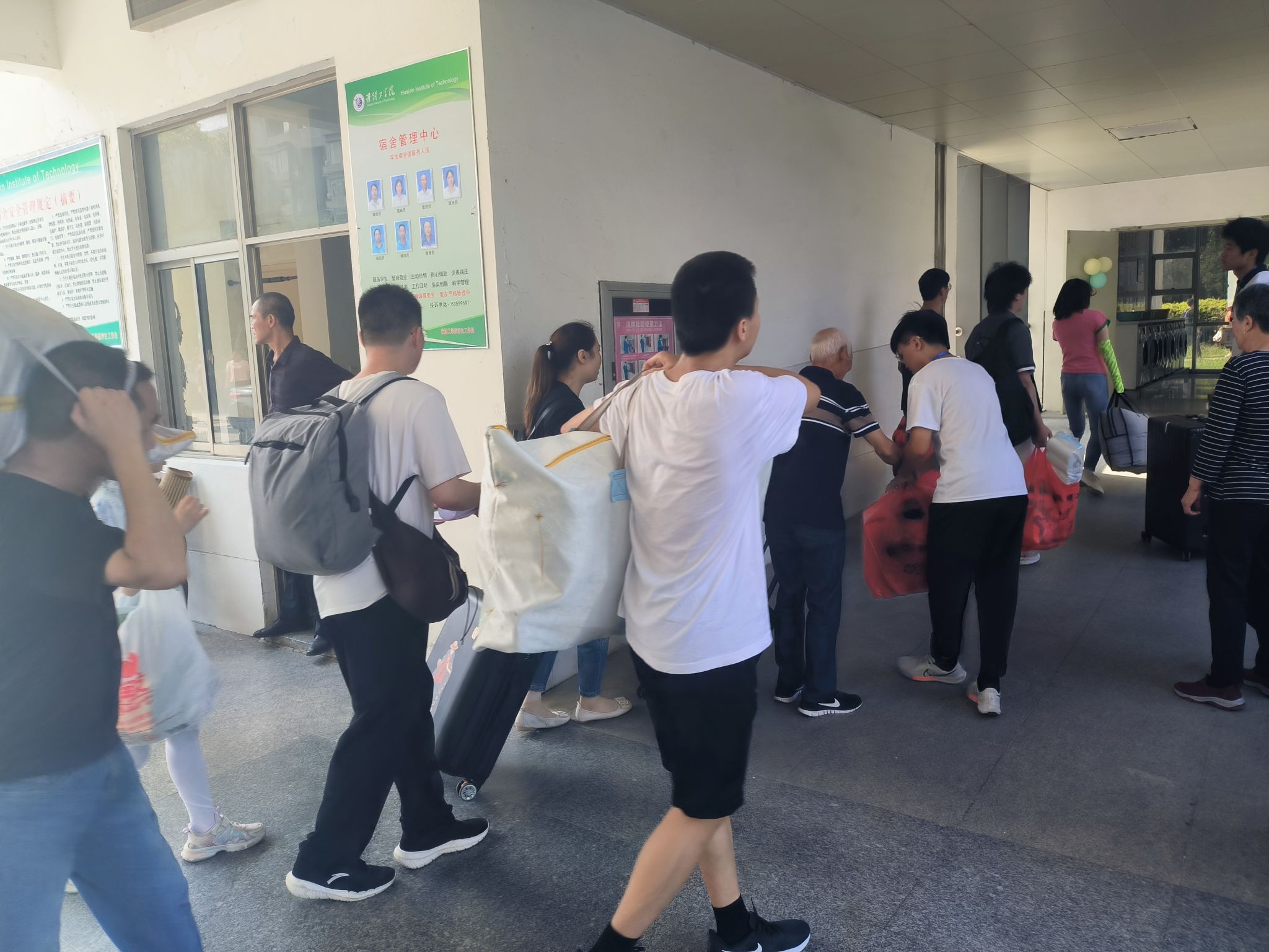 “大包小包,浓情相迎”,与新生墙合影留念之后,就可以前往温馨的宿舍了,那里将会是你“第二个家”。不远万里送行的家人、温柔细致的老师、热情迎接新生的志愿者,步履不停,服务立行。用无尽的热情和汗水,共同完成这场迎新接力赛。
