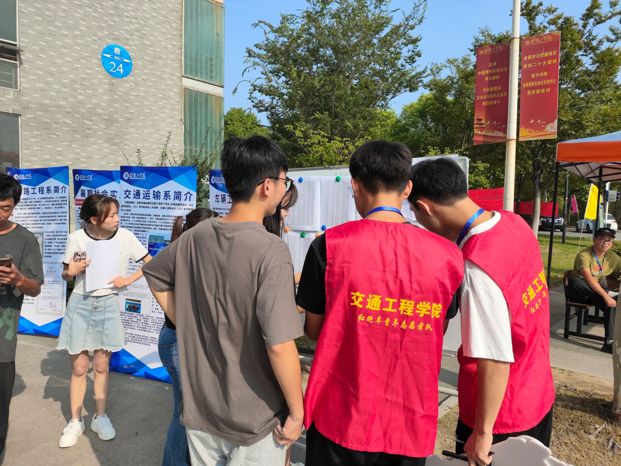 从日出至黄昏,志愿者们热情的声音从未停止,生怕让萌新们的期望落空,他们耐心解答新生的疑问,以温暖而热情的笑容,带给23级淮工交院学子明媚的心情。