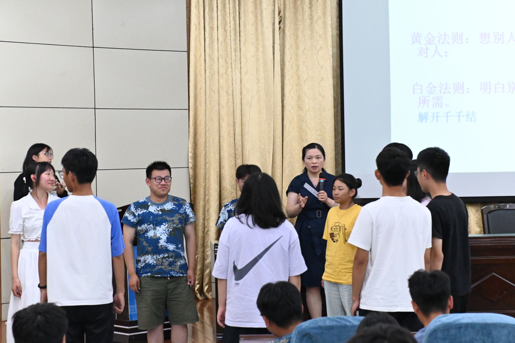 讲座中,桑海云老师通过理论讲解、自身经历、“解开千千结”小游戏等方式向同学们讲解了老员工活中可能面临的烦恼和相对应的解决方法,重在引导同学们树立正确的恋爱观、交友观,通过互动的方式让同学们认识到大学四年的紧迫性和重要性,并鼓励同学们走出迷茫的生活,明确自己的目标,在大学中通过自己的努力实现人生价值。
