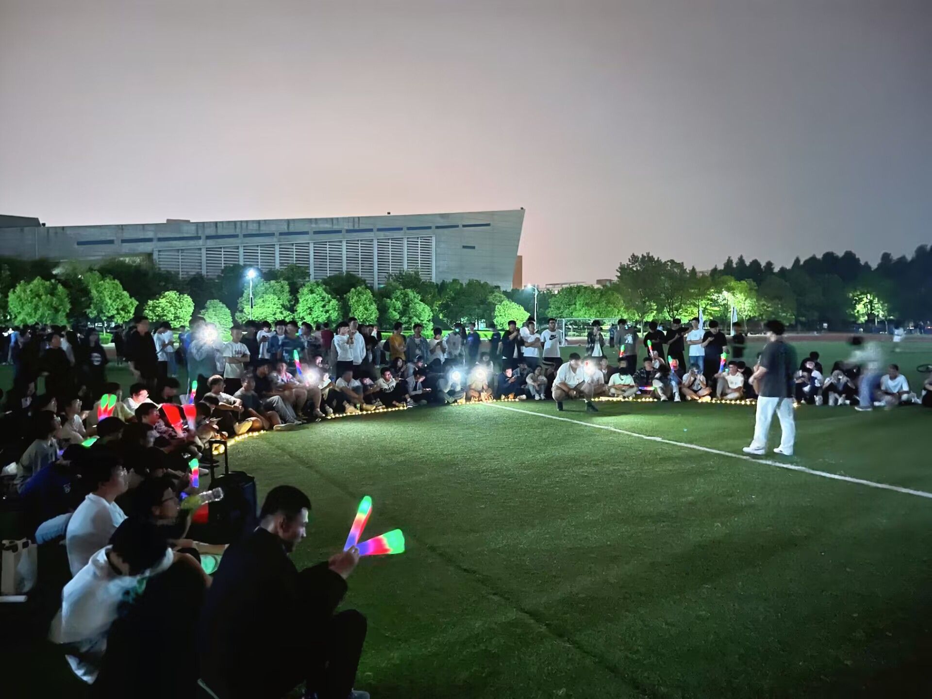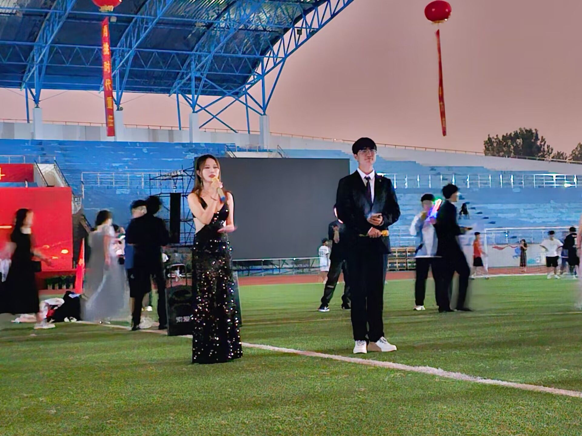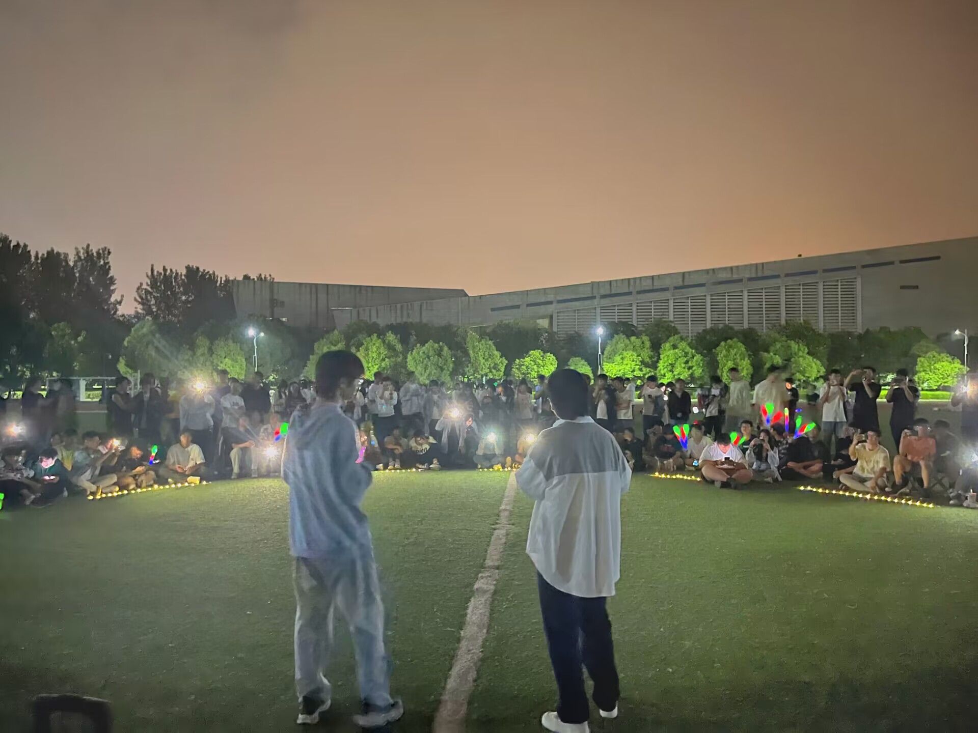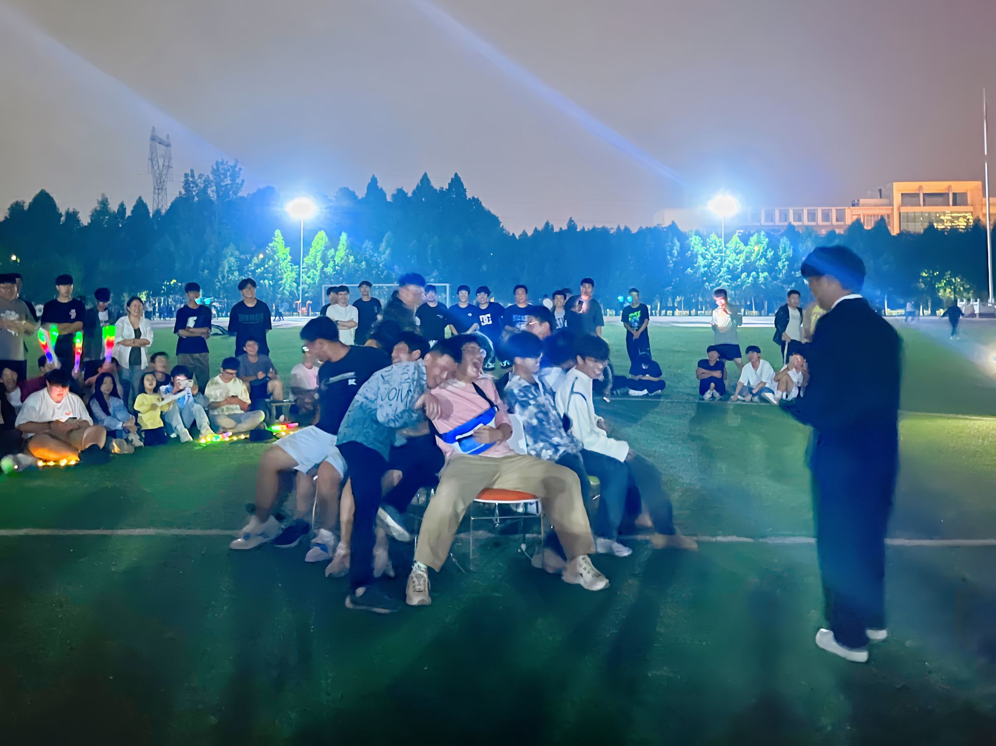 活动在同学们的欢声笑语中展开,挥舞的荧光棒、摇晃的手机灯光汇聚成了地上的点点星光。同学们在活动中尽情展示自己的才艺,合唱、独唱、舞蹈、走秀、二胡演奏、朗诵......操场上弥漫着欢声笑语,洋溢着青春的气息。表演空余之际,主持人邀请同学玩起了猜歌名、抢凳子等小游戏,现场氛围活跃,每个人脸上都透着开心的笑容。