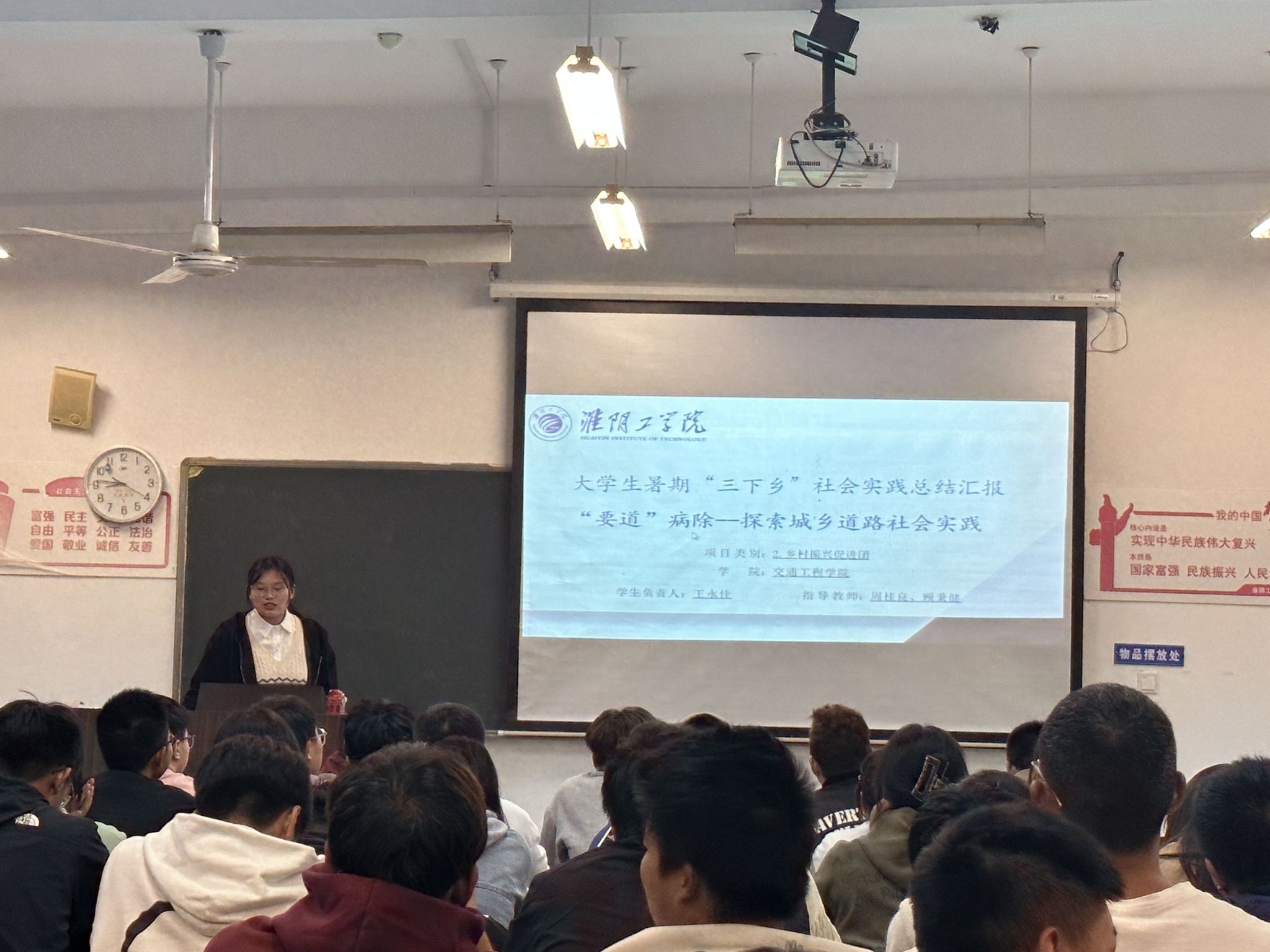 然后,王永佳同学以自己的优秀“三下乡”实践项目:“‘要道’病除——探索城乡道路”为抓手,详细讲解了如何在基于专业领域的耕耘下,为城乡道路的安全与顺畅献计献策。为同学们提供了“学与践”相结合的社会实践新思路。