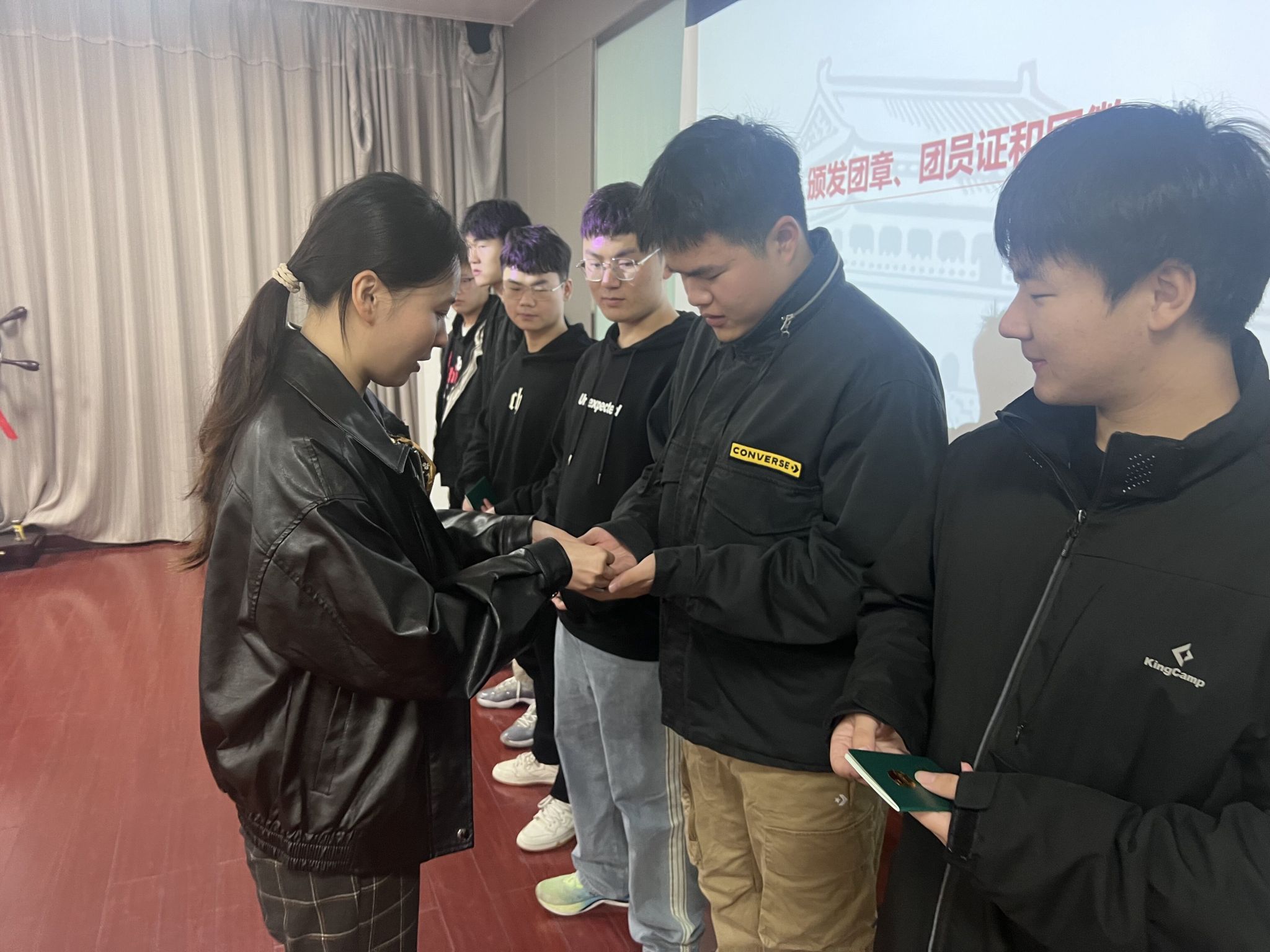 首先,全场起立,奏唱国歌;接着,顾秉健老师宣读新团员名单,真诚祝贺七位同学成为光荣的共青团员,并为新团员颁发团徽,带领新团员进行入团宣誓;最后,顾秉健老师对新团员提出了具体要求,希望新团员能够牢记入团初心,勤奋学习,充分发挥团员的先锋模范作用,以青春之我担时代之责。全场齐唱团歌,会议到此结束。