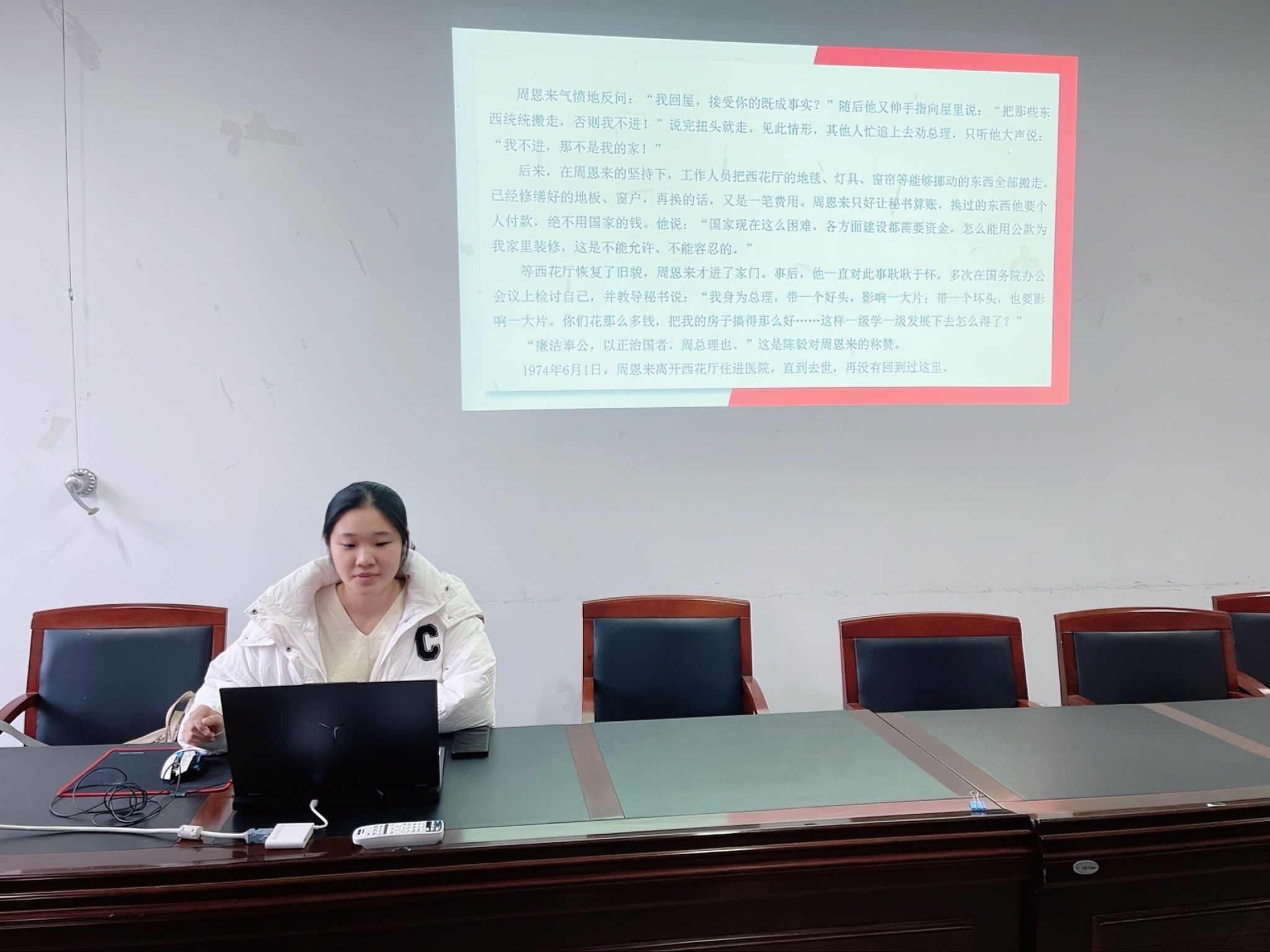 通过讲述历史上廉洁的正反典型和观看教育影片,使同学们进一步加深了对全面从严治党必要性、紧迫性的认识,深刻认识到廉洁教育永远在路上。作为一名新时代中共党员,要认真学习贯彻《中国共产党廉洁自律准则》《中国共产党纪律处分条例》的要求,增强自身党性修养,严于律己、克己奉公、廉洁自律、干净做人、表里如一、坚守初心,做好廉洁表率。