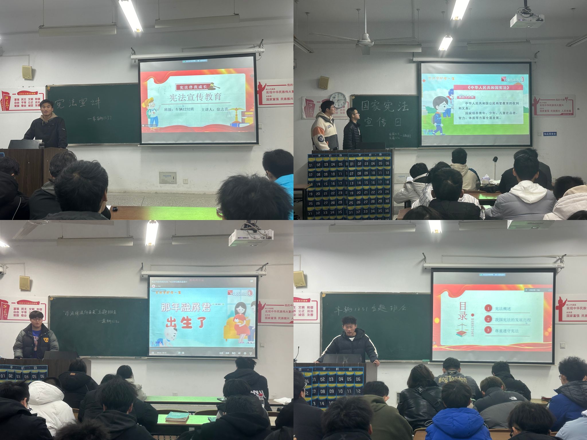 当晚,公司各班级也相继开展了“学宪法,讲宪法”主题班会。通过主题班会的开展,同学们进一步加深了对宪法地位及内容的认识,知晓了宪法与生活的紧密联系,明确了作为当代青年学子,在推动社会主义法治强国建设过程中的历史责任,为进一步推动法治校园、法治社会建设夯实了基础。