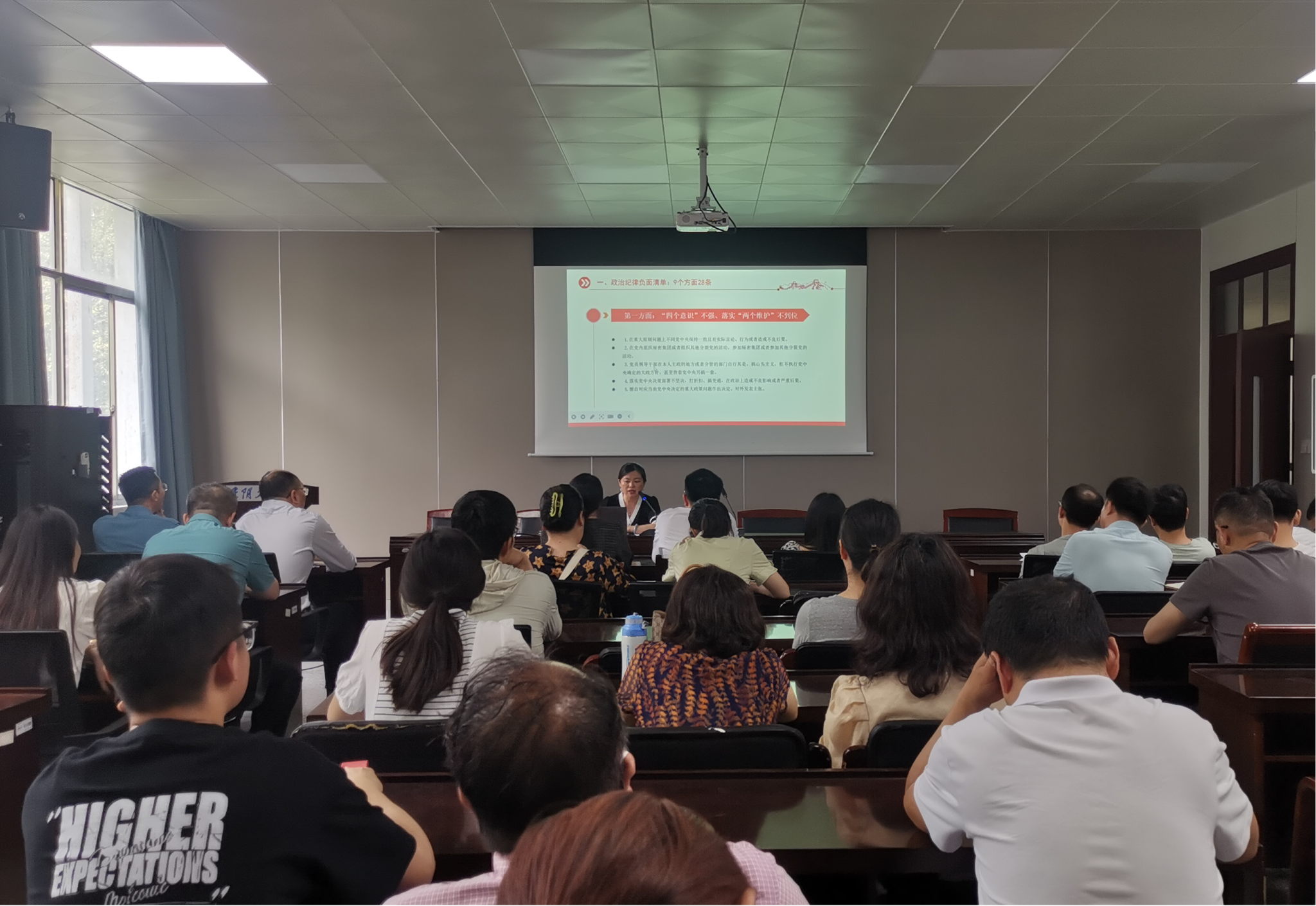 6月12日下午,党委书记桑海云为全体教师党员,第五支部、第六支部员工党员上党纪学习教育专题党课。