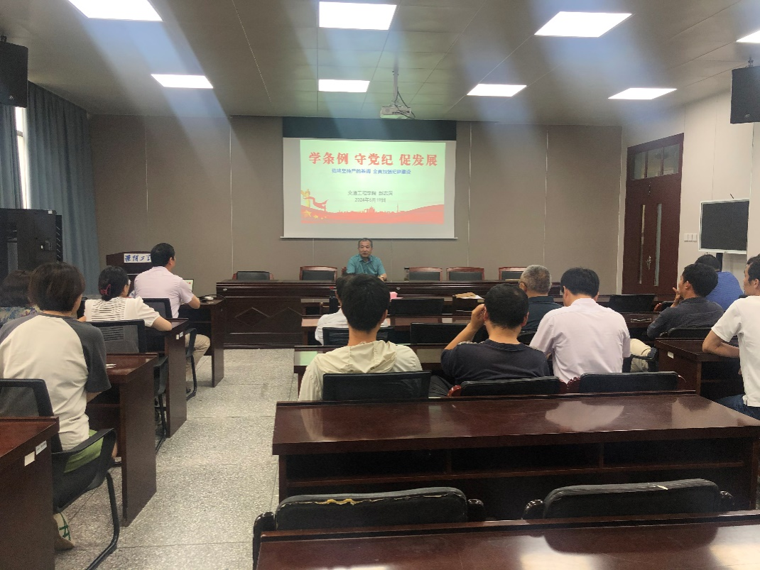 为深入学习领会新修订的《中国共产党纪律处分条例》,加强教师党员的党性修养,提升纪律观念,推动党纪学习教育走深走实,6月19日下午,经理赵志国教授为第一党支部全体党员作党纪学习教育专题讲座,第一支部书记包海涛主持会议。