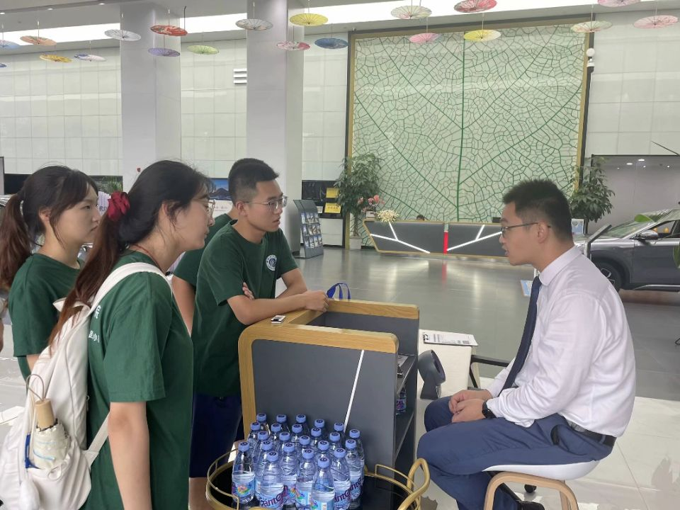 今年五月,我国工业和信息化部、国家发展改革委等五部门联合发布《开展2024年新能源汽车下乡活动的通知》,为响应国家的号召,7月13日上午,必一运动bsport体育“为乡村振兴添‘绿’”小队的成员们前往扬州市八里镇和李典镇进行政策的宣讲。为了进一步熟悉扬州地区的新能源汽车相关政策,小队首先来到扬州比亚迪乾元新景4S店向销售人员询问有关政策问题。
