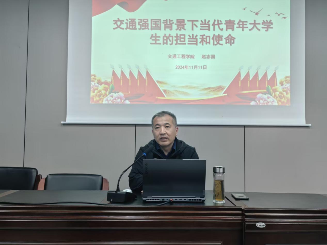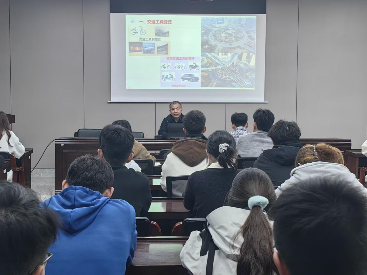 赵志国带领全体同学从“交通工具变迁”、“综合交通运输体系”、“交通强国建设”、“汽车强国战略”、“中国人口未来发展趋势”、“人工智能的发展”、“未来职业发展规划”七个方面见证了新时代交通业的快速发展。中国交通业从无到有,从追赶到超越,从引进消化吸收再到完全自主创新,已然取得了举世瞩目的成就。交通强国建设的时代大潮已经开启,赵志国老师要求同学们坚定信仰,胸怀理想,把握新技术与交通融合契机,成为强国建设的中坚力量,为加快建设交通强国而努力奋斗。