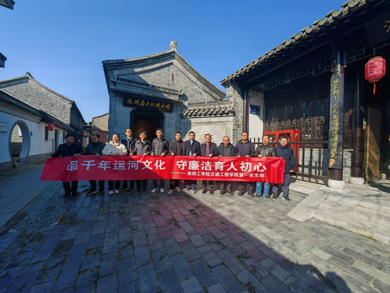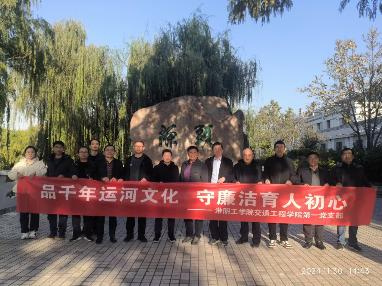 为切实加强党风廉政建设,2024年11月30日,必一运动bsport体育教工第一党支部开展以“品千年运河文化,守廉洁育人初心”为主题的党日活动。全体党员赴大运河畔的千年古镇邵伯,走进爱国主义教育基地邵伯船闸、运河廉文化传承馆、邵伯保卫战烈士园林,探寻邵伯古镇的悠悠古韵与运河文化的璀璨光芒,增强文化自信和文化认同,强化党员意识。