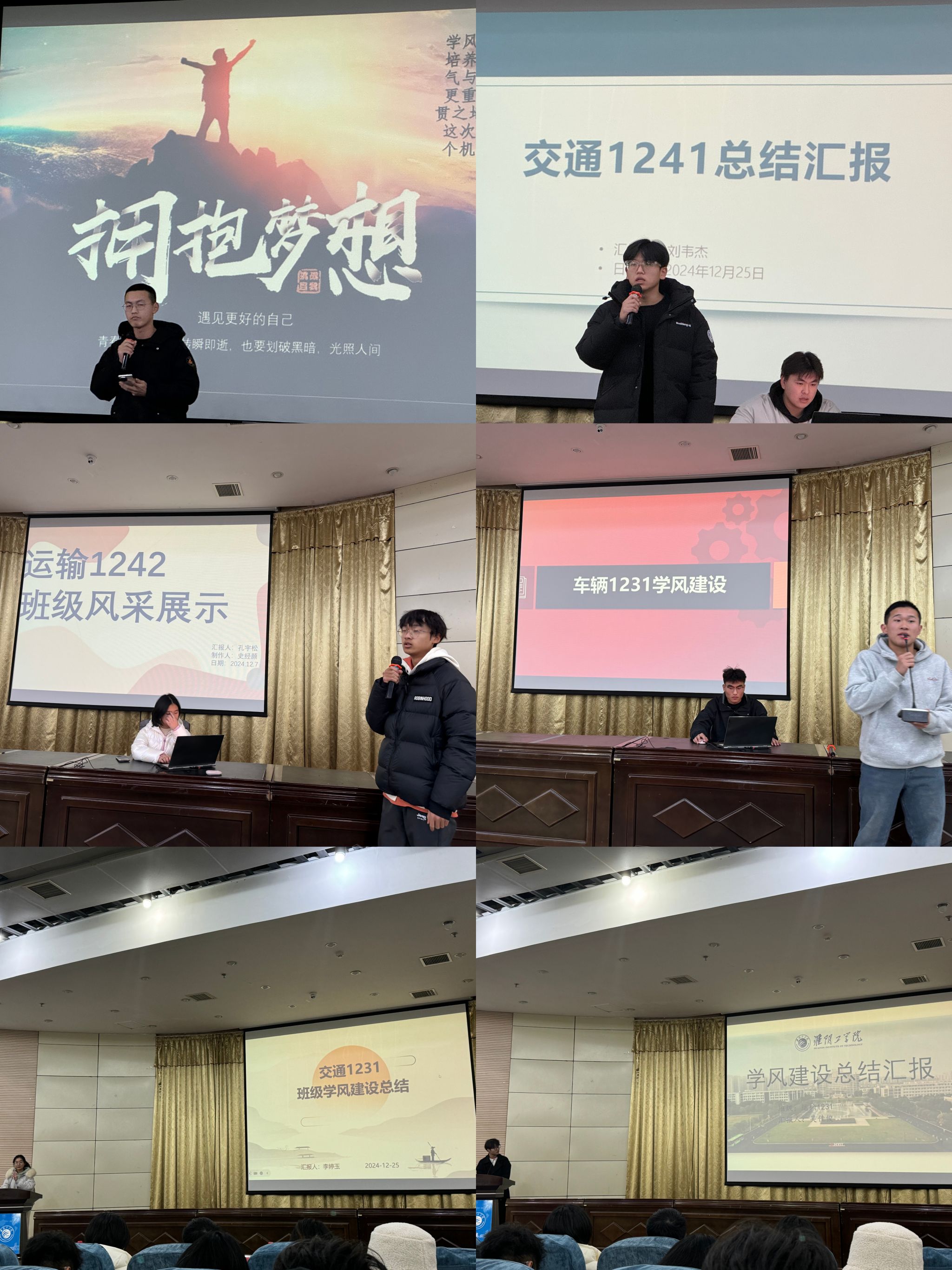大会伊始,各班班长分别展示了过去这一学期学风建设工作的成果。各班围绕班级学风建设、薪火相传、班级团建、宿舍卫生、学习情况、21天自律打卡情况及班上优秀学子获奖等内容展开叙述、总结。并指出现存问题及解决方案,表明对未来的展望。