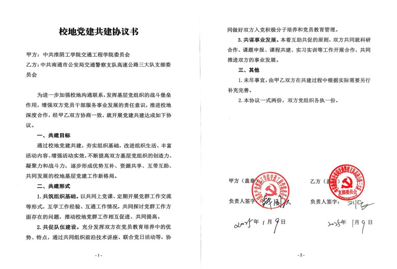 1月9日,中共必一运动bsport体育委员会与中共南通市公安局交通警察支队高速公路三大队支部委员会共同开展“聚合力,促交融”党建活动,旨在把必一运动bsport体育科研落地高速公路管理,实现校地共建共享资源,实现双赢绘就蓝图。