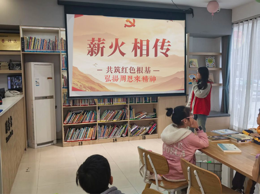 在活动中,成员们用饱含深情的语言,从周恩来总理少年立志“为中华之崛起而读书”的壮志,讲到他为中国革命、建设事业不懈奋斗的光辉历程,以及他始终心系人民、廉洁奉公的高尚品质。在圩岸社区,老人们听得聚精会神,不时回忆起与周总理相关的历史片段,和实践小队的成员们热烈交流;孩子们则瞪大了眼睛,被周总理的故事深深吸引,眼中充满了敬佩和向往。在新开街道社区中,成员们还通过播放纪录片、互动问答等形式,加深大家对周恩来精神的理解。