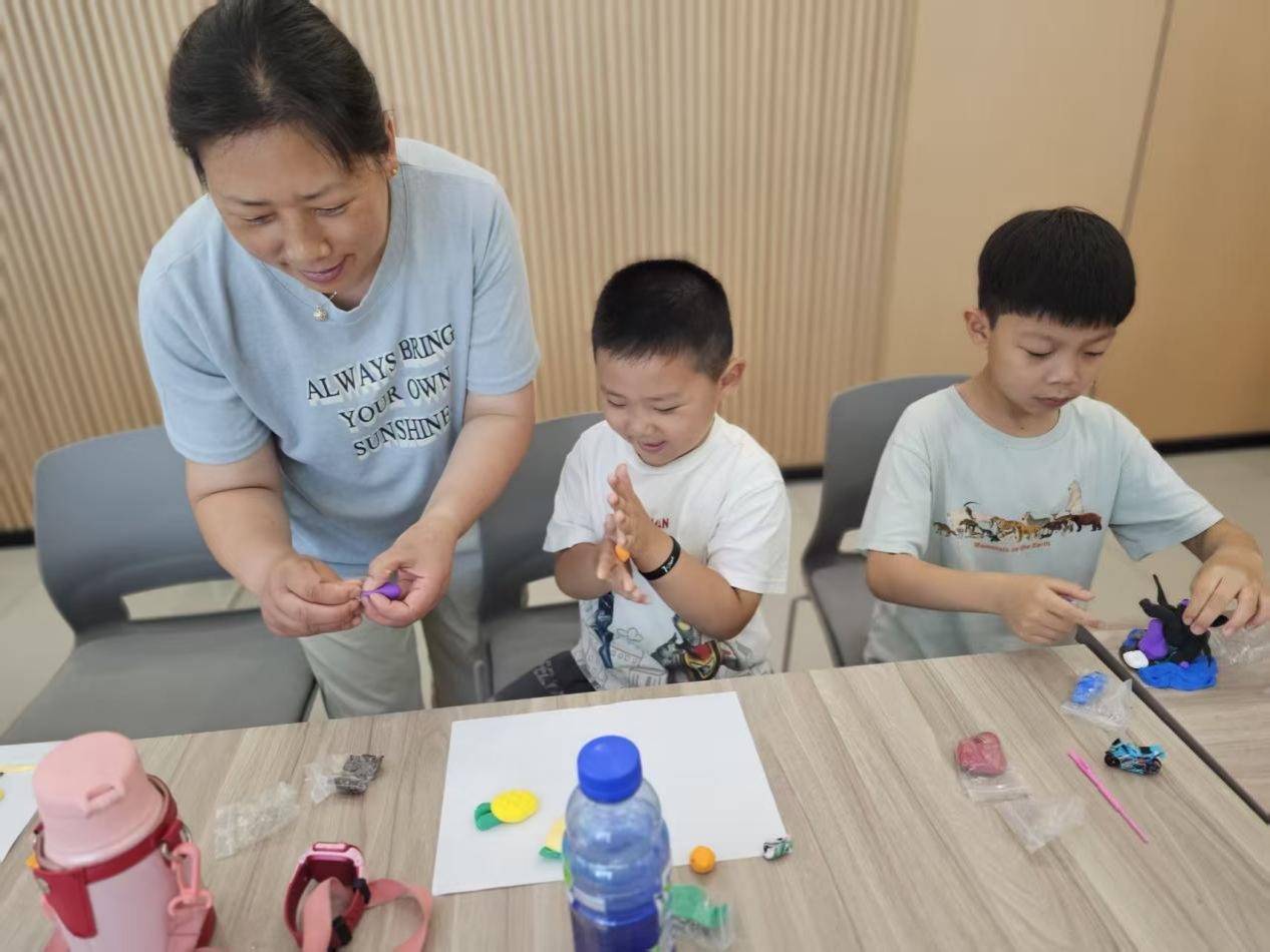 在随后的泥塑手工环节中,志愿者们准备了环保泥土、工具和参考图例,指导孩子们动手创作与节气相关的泥塑作品。有的孩子塑造了夏日荷花,有的表现了秋天稻谷,还有的用小泥团组合出冬日雪人等造型,创意十足、童趣盎然。志愿者们耐心指导,孩子们积极参与,现场气氛热烈、其乐融融。