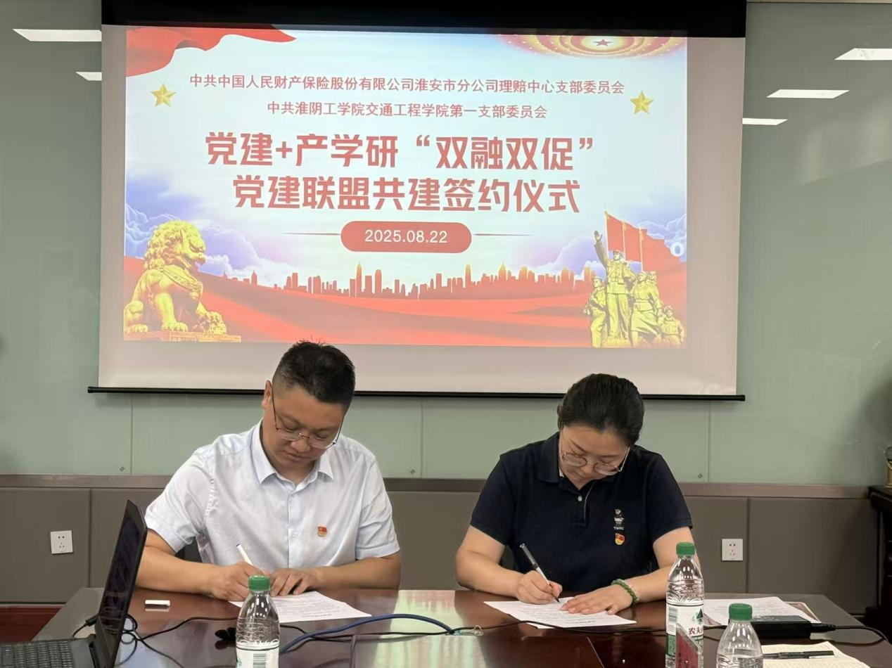桑海云介绍了公司党建工作的基本情况与特色成果,刘西介绍了中国人保淮安市分公司的党建体系与实践经验,并签署了党建共建合作协议。双方同志就党建共建、校企协作、产学研融合等工作进行了深入交流,达成了多项共识。