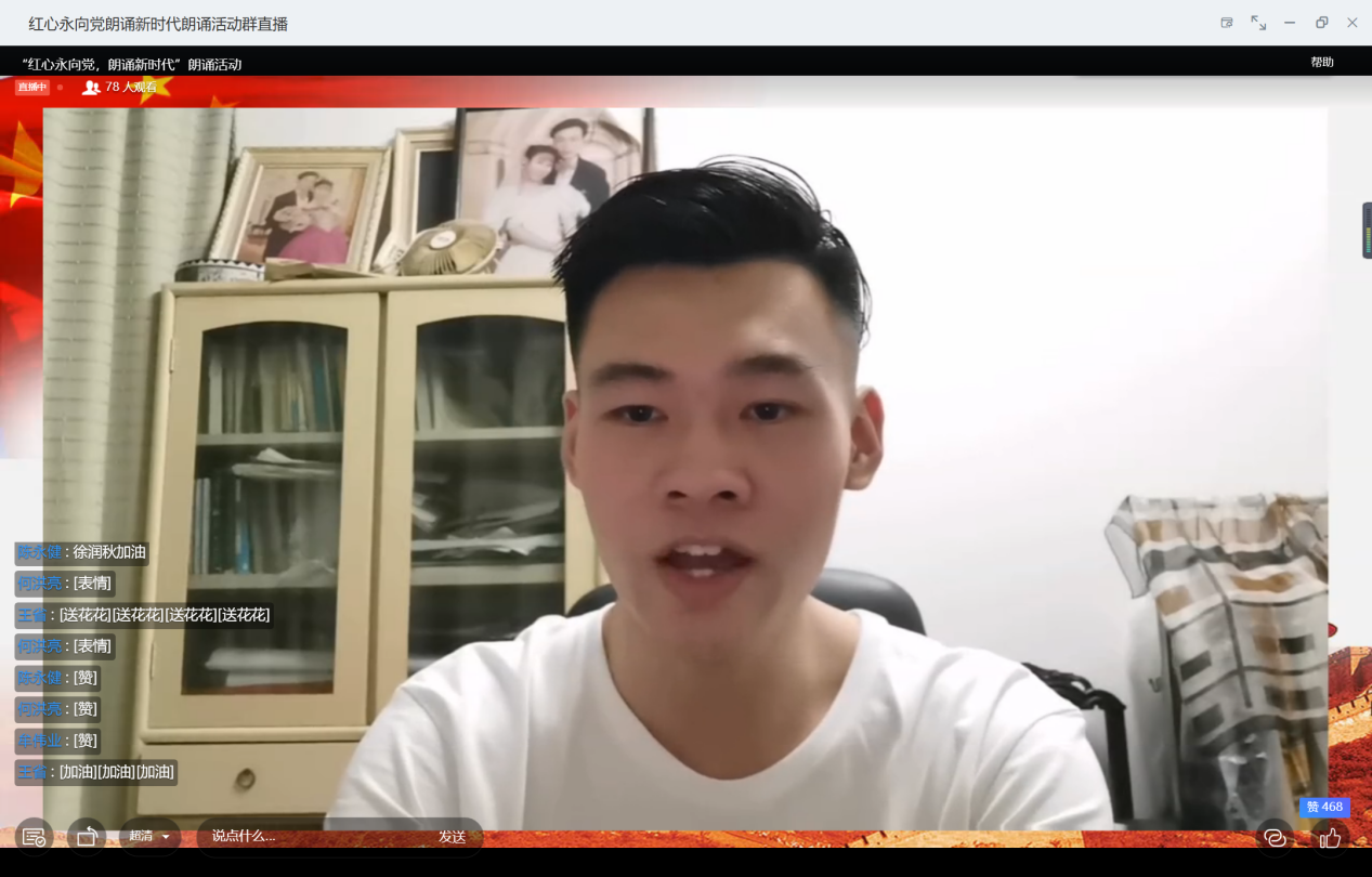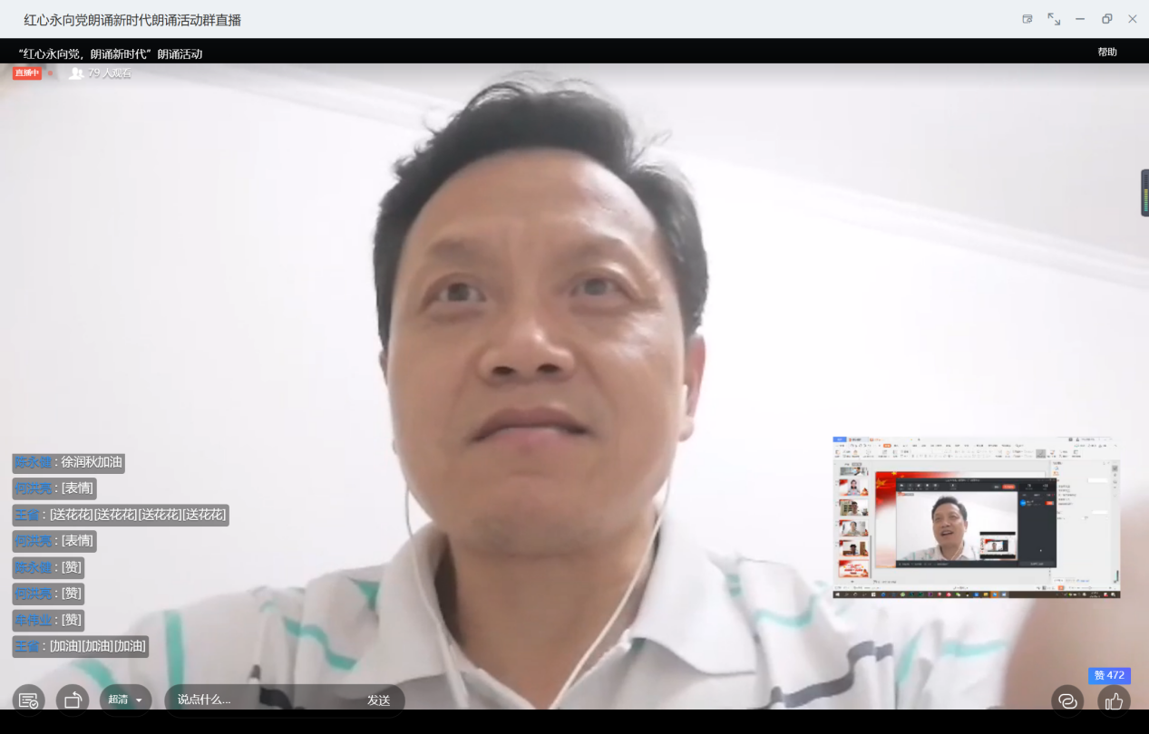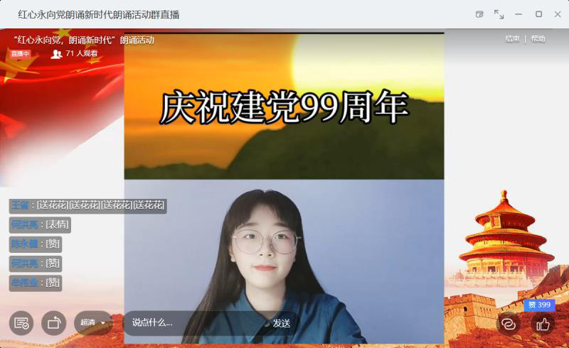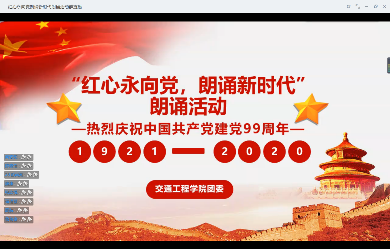 为庆祝中国共产党成立99周年,讴歌党的光荣历史和丰功伟绩,弘扬党的优良传统,激发全体员工爱党、爱国情怀,展现新时代老员工昂扬向上、蓬勃奋发的精神风貌,2020年7月5日晚8点,必一运动bsport体育团委在钉钉直播间开展了“红心永向党朗诵新时代”庆祝中国共产党成立99周年朗诵活动。公司党委书记徐才千、副书记、副经理余文明、党务秘书姚旭荣、学工办主任韩笑、团委副书记顾秉健以及各位辅导员老师出席本次活动。