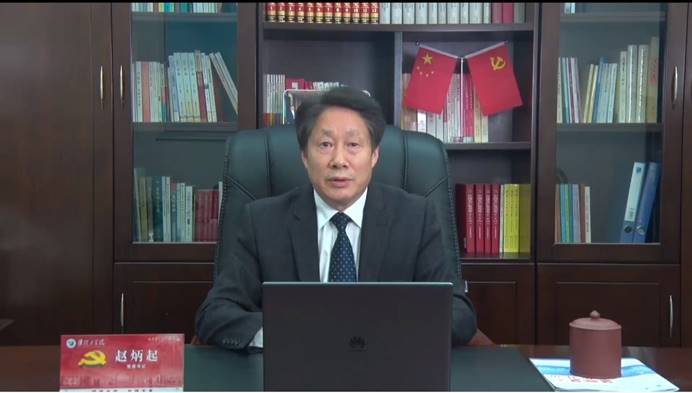 赵炳起书记首先感叹了今年的春天来之不易,并表达了因为疫情原因为确保师生安全而暂缓开学无法见到同学们的惋惜。但是,赵书记表示隔空不隔心,希望能在开学时看到同学们的成长和进步。