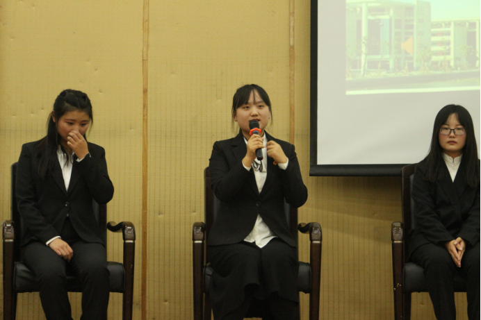 力行组同学突出“天行健,君子以自强不息;地势坤,君子以厚德载物”的精神。安少珂同学讲述了自己参与“创青春”国赛,并获金奖的经历,同时也提到作为董事长助理,如何思考工作等问题;姜丹丹同学作为院艺术团副团长,谈到学习与爱好发展,学习与活动时间分配等问题;曹妍同学身为班长,积极发展自身专业,在科技创新比赛、科研探究与思索等优势上突出,时刻以身作则,积极带领班级向更高的目标前行。
