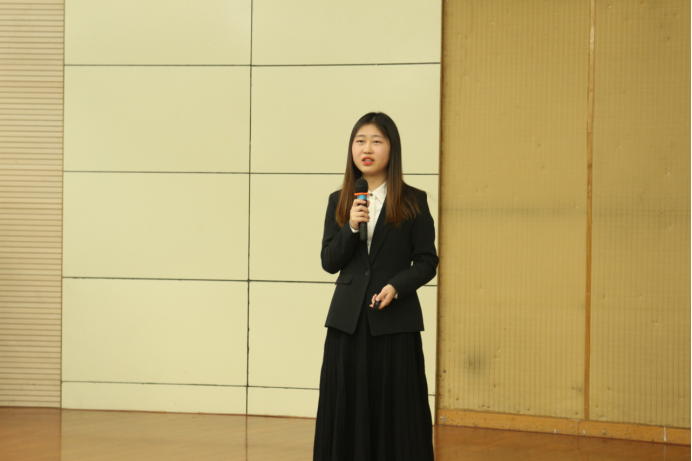 首先,励志组同学展现了“石可破也,而不可夺坚;丹可磨也,而不可夺赤”的精神。曹洋同学参与21天暑期支教,为仲弓村孩子们送去夏日清凉,筑造科学放飞的梦想;陈紫薇同学积极参与志愿者服务工作,呼吁青年学子要学会奉献,学会感恩,并勉励在场同学们无论在任何时候都要积极、认真地对待学习,要有回馈社会之心,遇事不要轻言放弃。