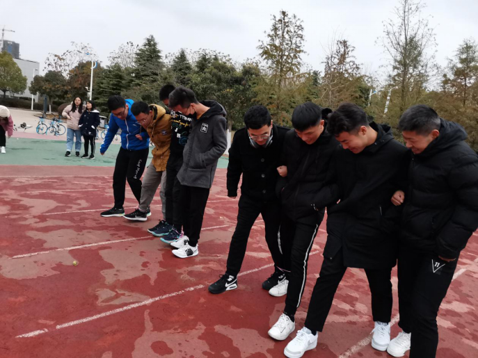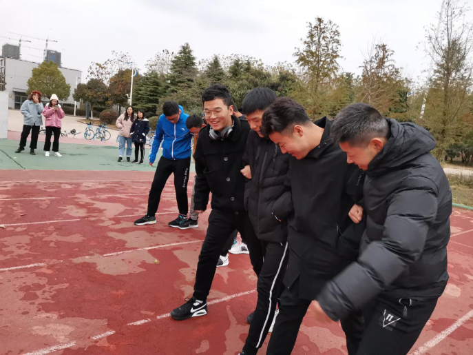此次活动,一共开展了两个比赛。一是“昂首阔步,横行天下”,参赛同一宿舍四人在起点处肩并肩站成一排,相邻两人的腿用绳子绑在一起,最先从起点到达终点的队伍获胜;二是“你心我心合而为一”,从参赛同一宿舍四人中挑选一人充当“大臂”,其他三人将其固定,最先抓到物品的队伍获胜。活动增进了宿舍同学的友谊,拉进了彼此的关系,取得较好效果。