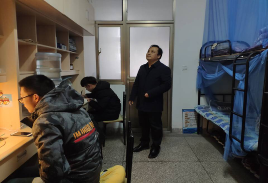 余书记随员工会成员,进入北苑和南苑各男生宿舍进行突击检查,员工们积极配合院内对宿舍安全卫生方面的检查。