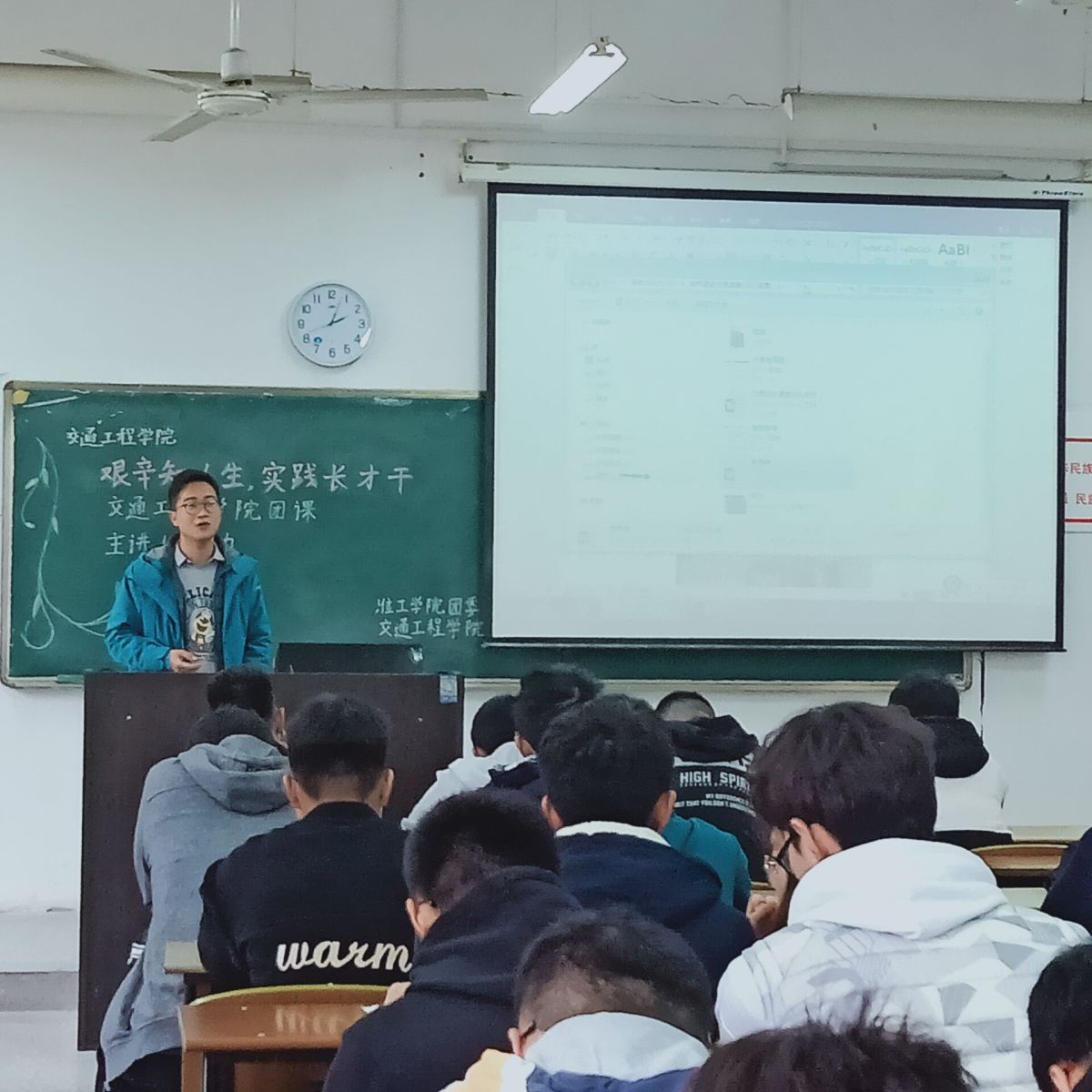 主讲人王力通过“沧海桑田,四十年”、“日新月异,四十年”、“继往开来,奔三五”三个方面介绍了暑期“三下乡”社会实践活动。城市道路交通调查小组走进城北社区,通过老人的记忆寻找淮安四十年来的交通巨变。暑期实践小队更是采访了淮安市图书馆地方典籍的管理人员,以便更加直观的展现改革开放四十年来淮安交通状况的巨变。主讲人王力通过介绍“三下乡”活动告诉大家一个讯息,实践出真知。