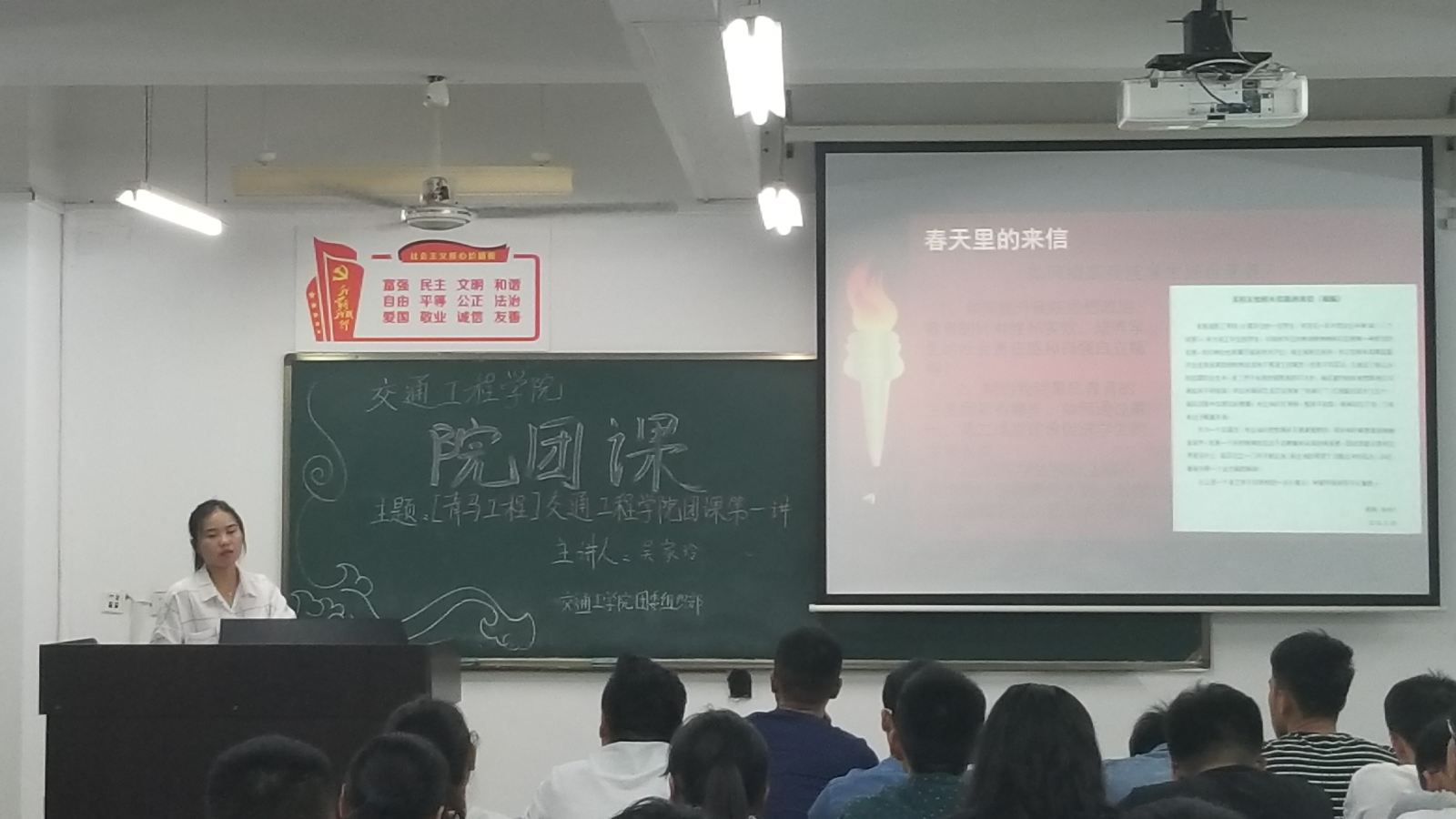 在课上,主讲人吴家玲介绍了“恩来班”、“魅力团支书、活力团支书”、“与信仰对话”、“习近平总书记讲话”、“‘春天里的来信’活动”五个主题系列活动,并对其展开详尽的阐释。