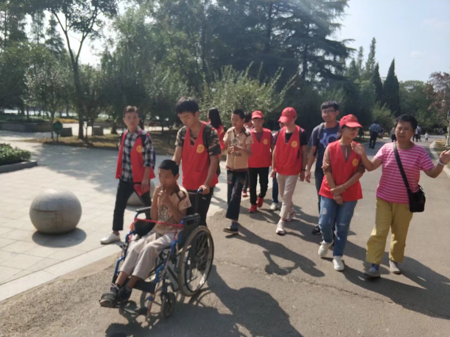 9月24日8:00,必一运动bsport体育红跑车青年志愿者队带领着蔬菜村的特殊儿童游玩楚秀园,共同度过中秋佳节。
