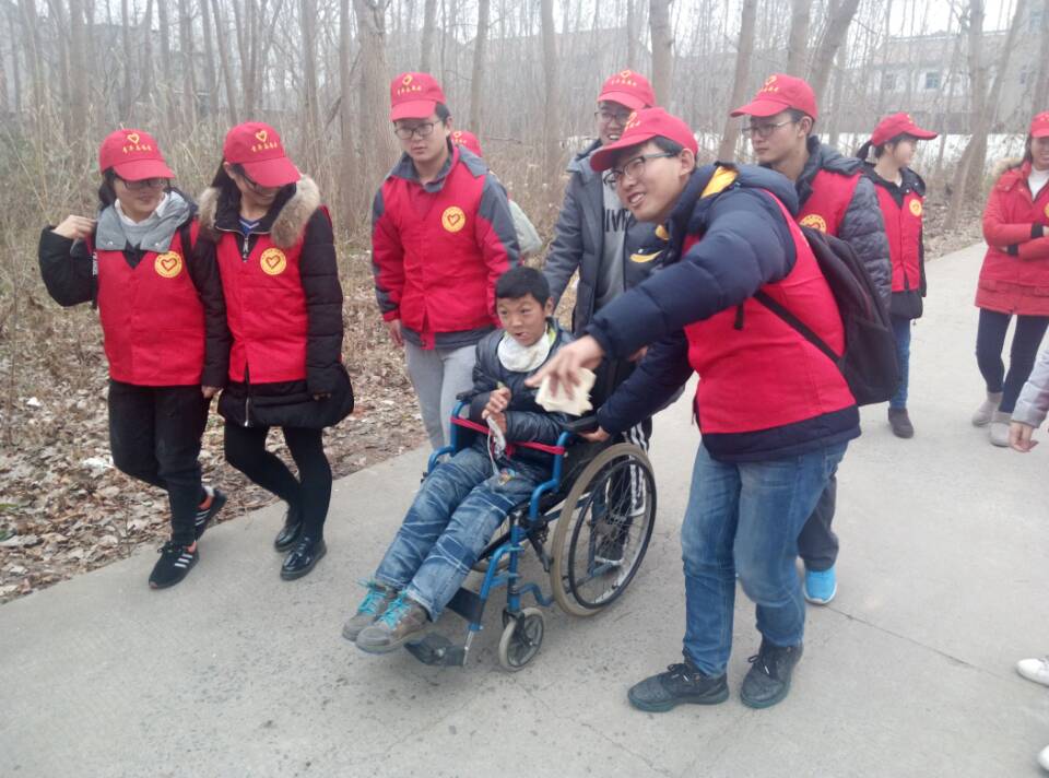 在这新年即将到来之际,青年志愿者们依然挂记着蔬菜村的奶奶与孩子。陪他们拉家常、散步,在寒冷的冬天给他们送去些许温暖。远远见到志愿者身影的两个孩子笑着手舞足蹈像是天真的孩子来到游乐园。“感谢,感谢”老奶奶一见到志愿者的到来不停重复这两个简单的字眼。屋内,已经数次来到蔬菜村的“老”志愿者陪着老奶奶拉家常,倾听老人的话语。屋外,很多第一次来的“新”志愿者们围着孩子逗乐,说笑。谈话间,志愿者已偷偷将崭新的手帕塞到阿姨的手中。“走,咱们出去玩。”志愿者们前面扶着哥哥,后面用轮椅推着弟弟。从乡间的小路到热闹的街头,志愿者们带着孩子一路边走边看,笑意映在每一个人脸上。临别前,志愿者们更是已经与老奶奶约好:过几天,带着两个孩子一起去淮工的校园走一走、看一看。