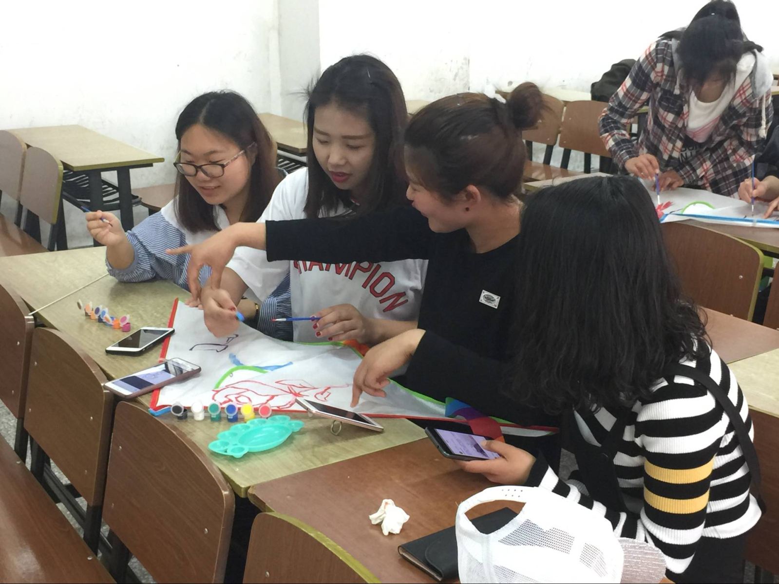 本次比赛分为两个部分,前期是同学们亲手涂鸦自己的风筝,后期是放飞自己的风筝。涂鸦部分,涂鸦在两个校区同时举行。赛场上,参赛选手用画笔和斑斓的色彩,淋漓尽致地展现自己的画工;用各自独特的视角,描绘着心中最美好的画卷;线条的勾勒,色彩的填充构成了一幅幅富有自由、清新、随兴的艺术画,有栩栩如生的脸谱,有无比可爱的卡通人物,还有简单的各种风景画,颜色艳丽,创意十足……整个比赛现场气氛活跃。