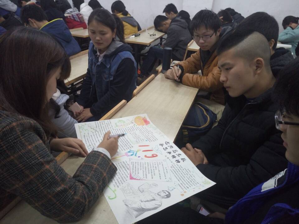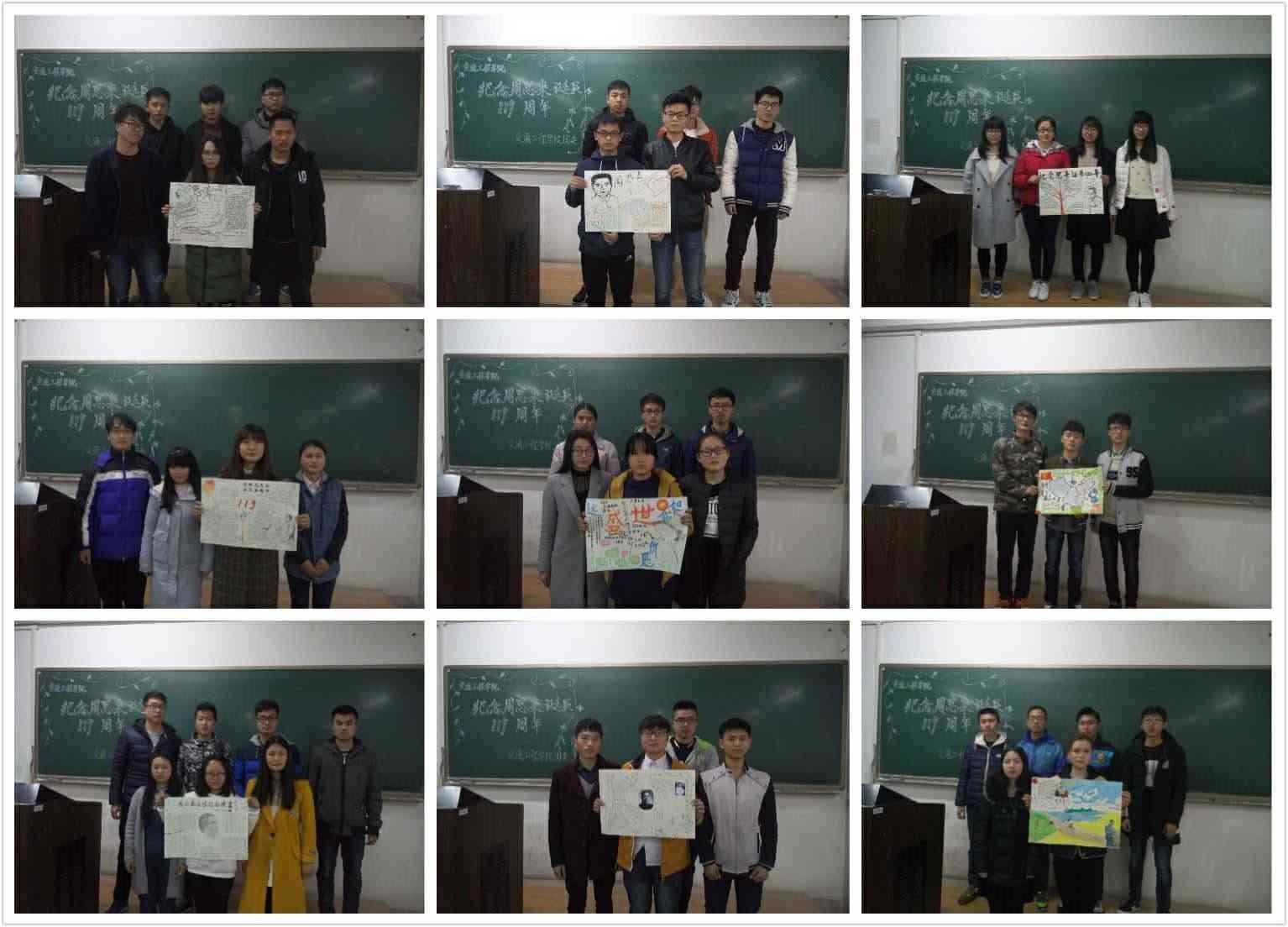 课中,同学们认真观看了关于周恩来的视频,视频介绍了周恩来的平生事迹和丰功伟绩,以此同学们增加了对周恩来总理的认识,精神上受到了很大的鼓舞。同学们在讨论标语内容时,各抒己见,讨论热烈,富有激情,最终达成了统一的意见。他们还在自己制作的纪念周总理海报上写下标语,以表达钦佩与崇高的敬意。最后各班级与自己制作的海报合影留念。团课在热烈的掌声中圆满结束。