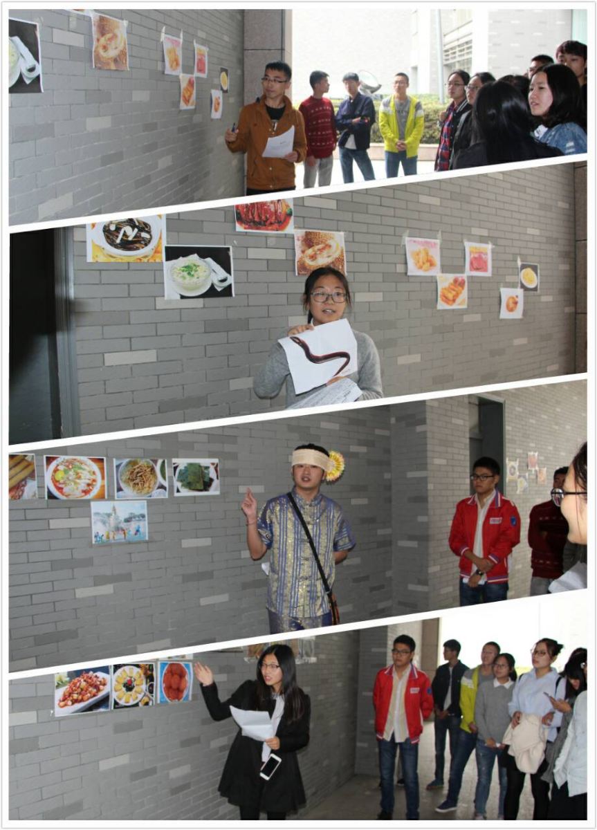 四名来自不同地区的同学分别介绍各自的当地美食及人文特色。他们生动活泼的讲述,赢得在场同学热烈的掌声。尤其是在同职工的交流中,徐州的狗肉及傣族的竹虫、泼水节深深吸引着他们。他们的热情回应既是对同学们精彩讲解的点赞,更是对中华饮食文化博大精深的钦佩。