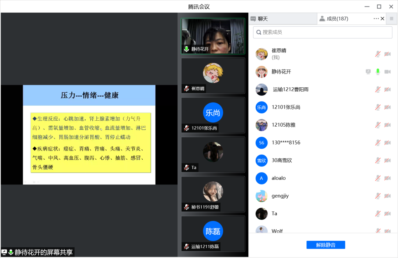 本次讲座旨在帮助同学们缓解因疫情带来的心理压力和解决可能出现的情绪问题,给正处于因疫情封校的同学们提供了巨大的心理援助。