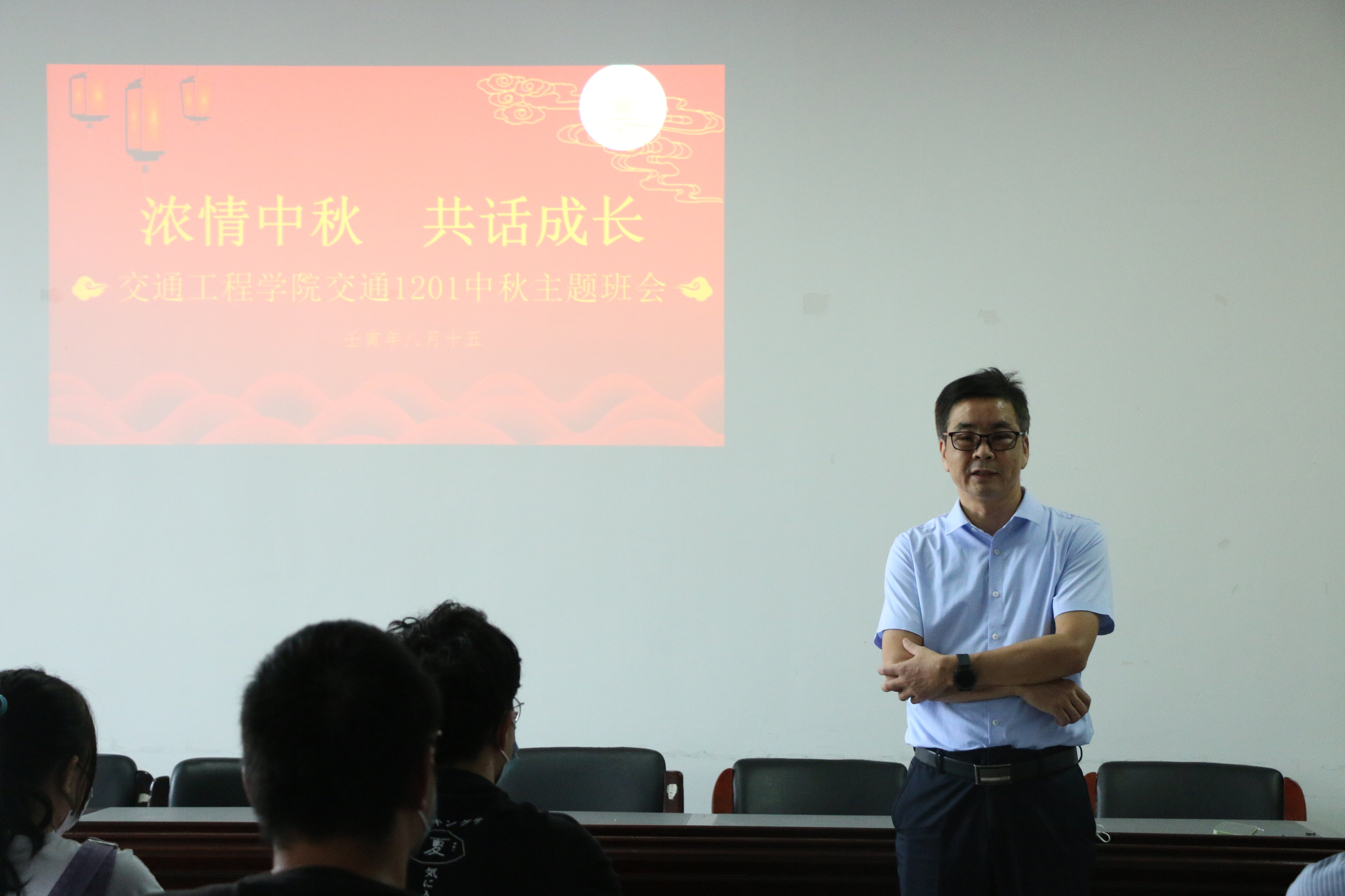 在交通1201班班会上,校常委、组织部长秦家沛要求大家严格遵守公司的疫情防控管理规定,提高自身的疫情防范意识、人身安全意识、网络安全意识等,在线上网络教学期间也要保证学习的质量,珍惜大学时光,以持之以恒的决心和坚持不懈的努力创造人生的幸福和辉煌,并祝福大家中秋节快乐,希望大家能继承和弘扬中华优秀传统文化,增强爱国主义情感和民族自豪感。