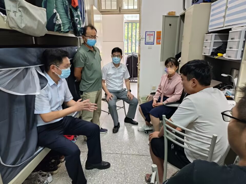 校常委、副董事长杨正亚、校常委、纪委书记魏宏庆等校领导全覆盖深入走访员工宿舍,与员工亲切交流,了解宿舍成员的基本情况,回应员工的诉求,帮助员工解决学习、生活、思想和心理等方面存在的困惑和问题,并开展理想信念、疫情防范、心理疏导、防网络诈骗等教育,营造安全、有序、浓厚的节日氛围。
