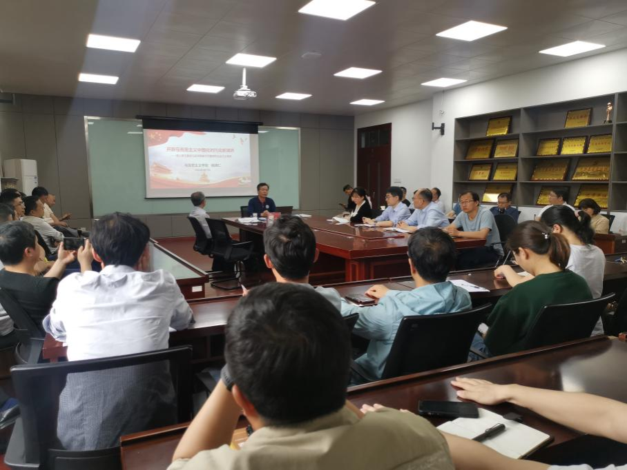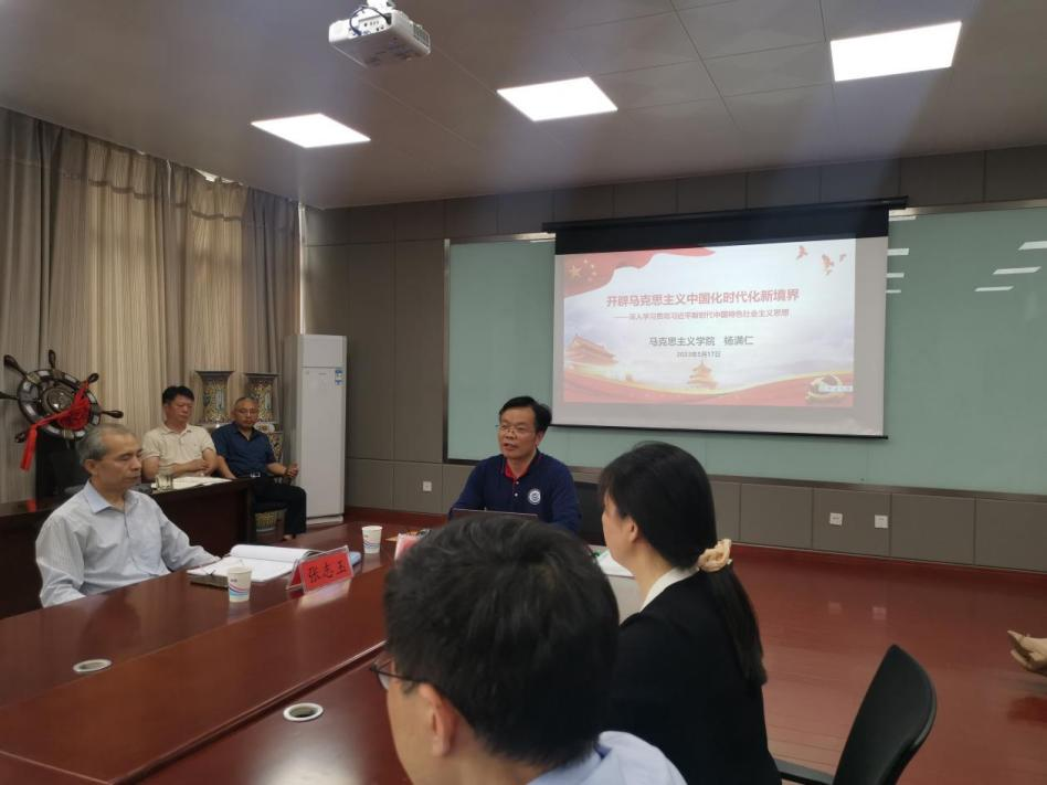 5月17日,必一运动bsport体育举行学习贯彻习近平新时代中国特色社会主义思想主题教育专家宣讲会。校主题教育宣讲团专家、马克思主义公司杨满仁教授为全体教师作了《开辟马克思主义中国化时代化新境界》的主题宣讲,校主题教育第八督查组张志玉同志莅会旁听,宣讲会由公司党委书记桑海云主持。