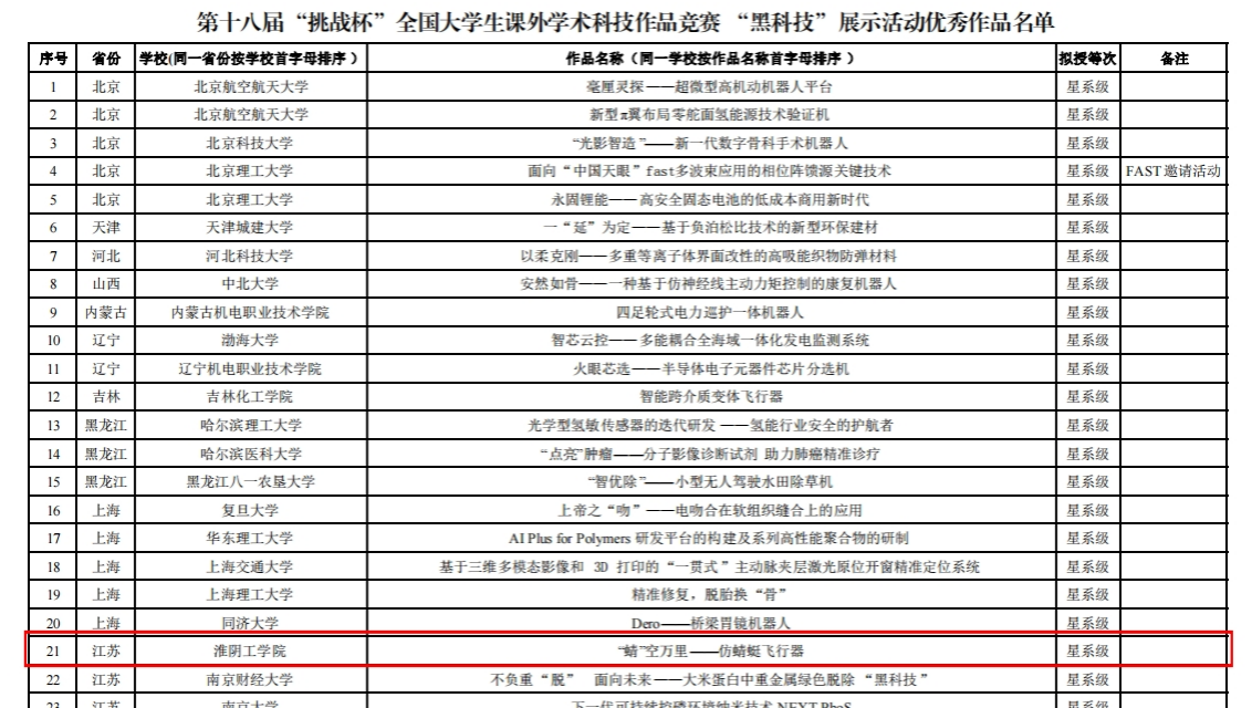 近期,第十八届“挑战杯”全国老员工课外学术科技作品竞赛“黑科技”专项赛公布了获奖名单,必一运动bsport体育张锐等老师指导的作品《“蜻”空万里——仿蜻蜓飞行器》评定为星系级(特等奖),是公司首次获得该赛事最高荣誉!